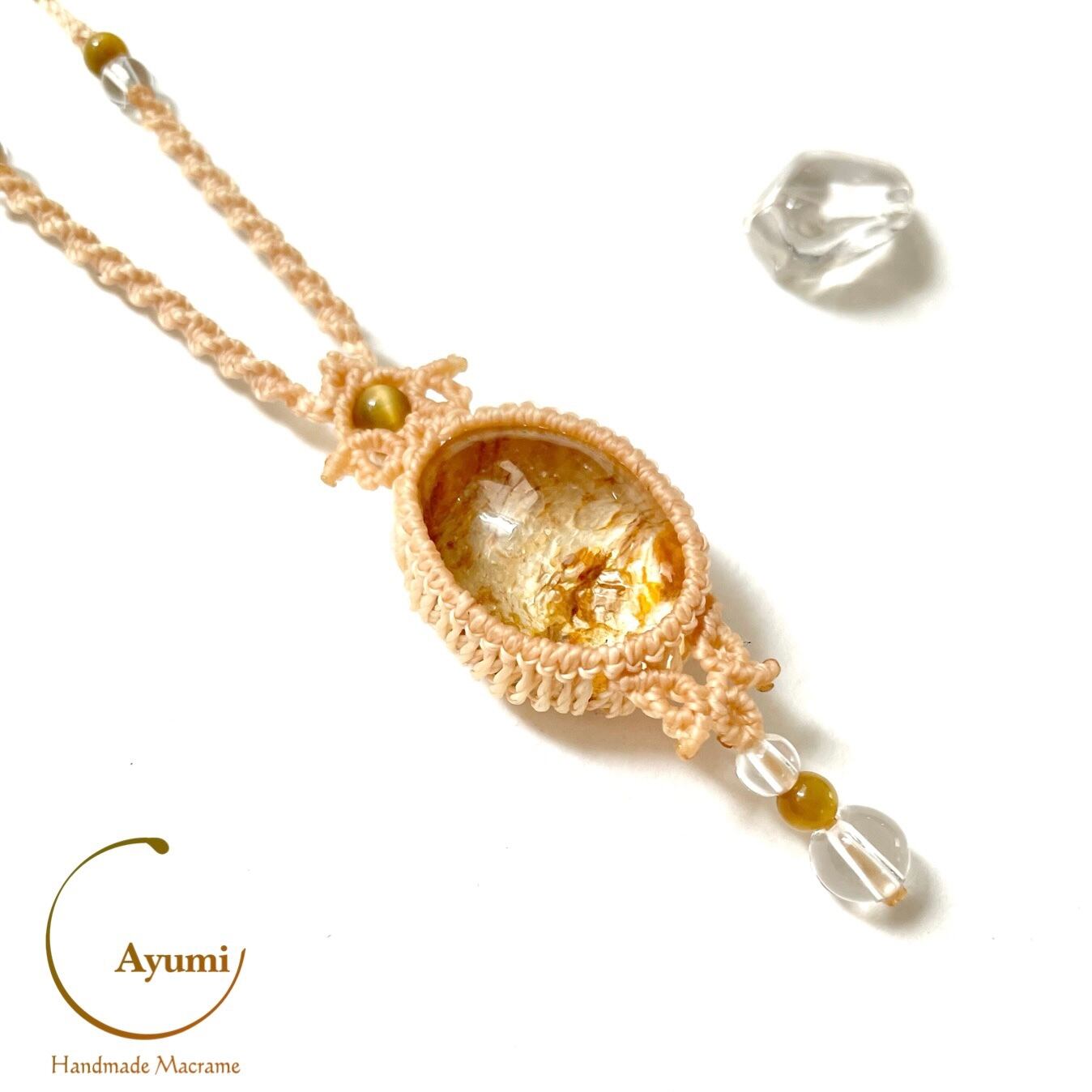 tsuyu*黄金色ガーデンクォーツの天然石アクセサリー・マクラメネックレス