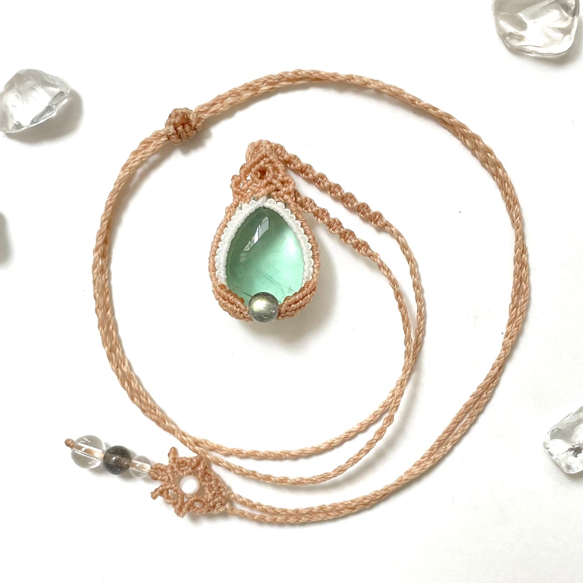 dakko*神秘の泉♪グリーンフローライトとラブラドライトの天然石アクセサリー・マクラメネックレス