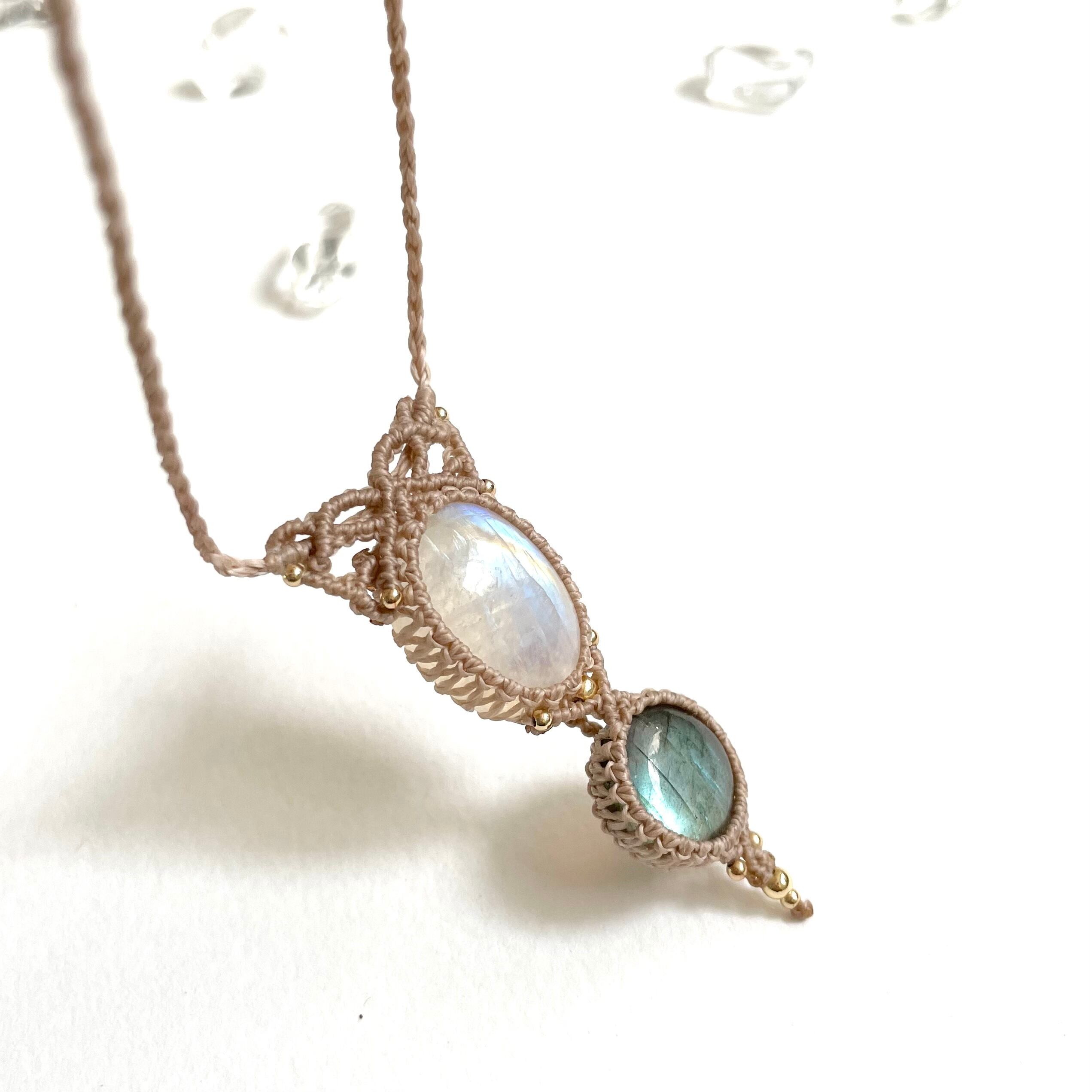 麗しの共演♪ レインボームーンストーンとラブラドライトの天然石マクラメネックレス