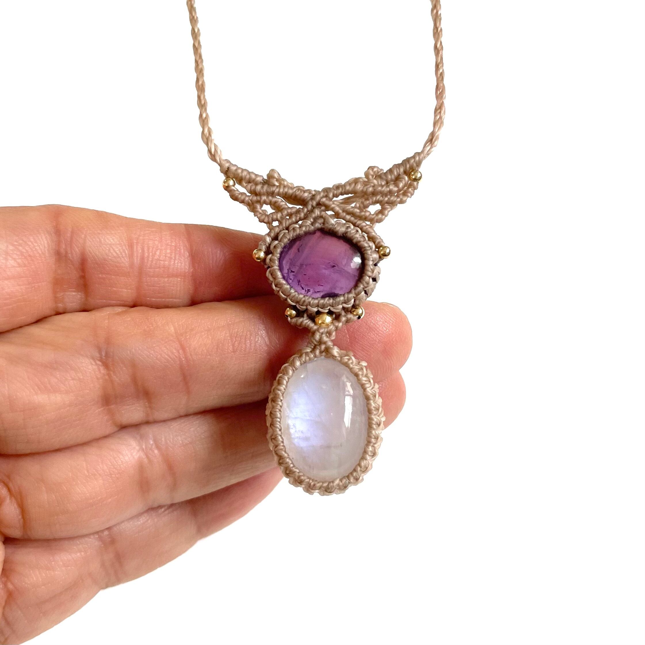 マクラメ 大人 上品 プレゼント プチギフト 天然石 マクラメネックレス マクラメペンダント マクラメアクセサリー 天然石ネックレス 天然石ペンダント 天然石アクセサリー お守りジュエリー レインボームーンストーン アメジスト 誕生石