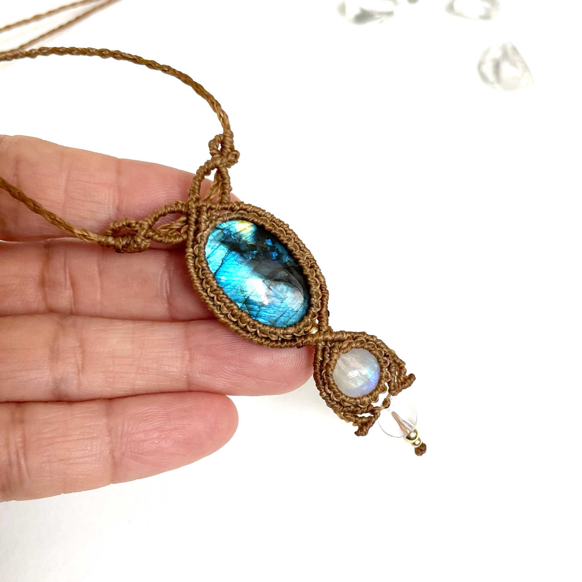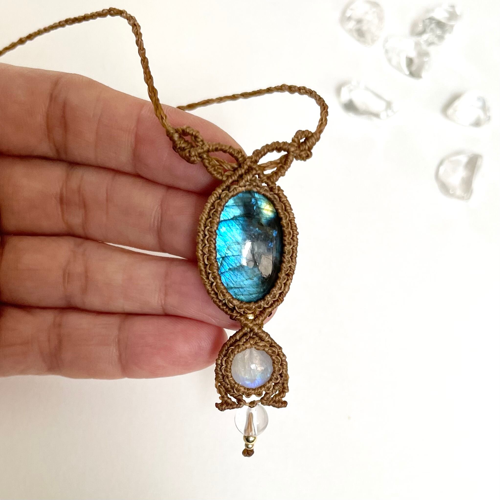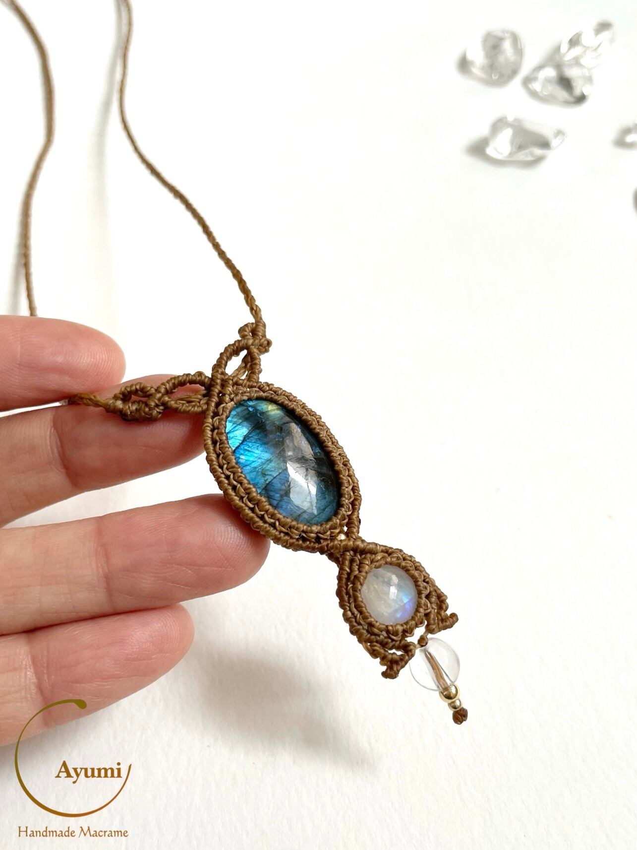 マクラメ 大人 上品 プレゼント プチギフト 天然石 マクラメネックレス マクラメペンダント マクラメアクセサリー 天然石ネックレス 天然石ペンダント 天然石アクセサリー お守りジュエリー レインボームーンストーン ラブラドライト