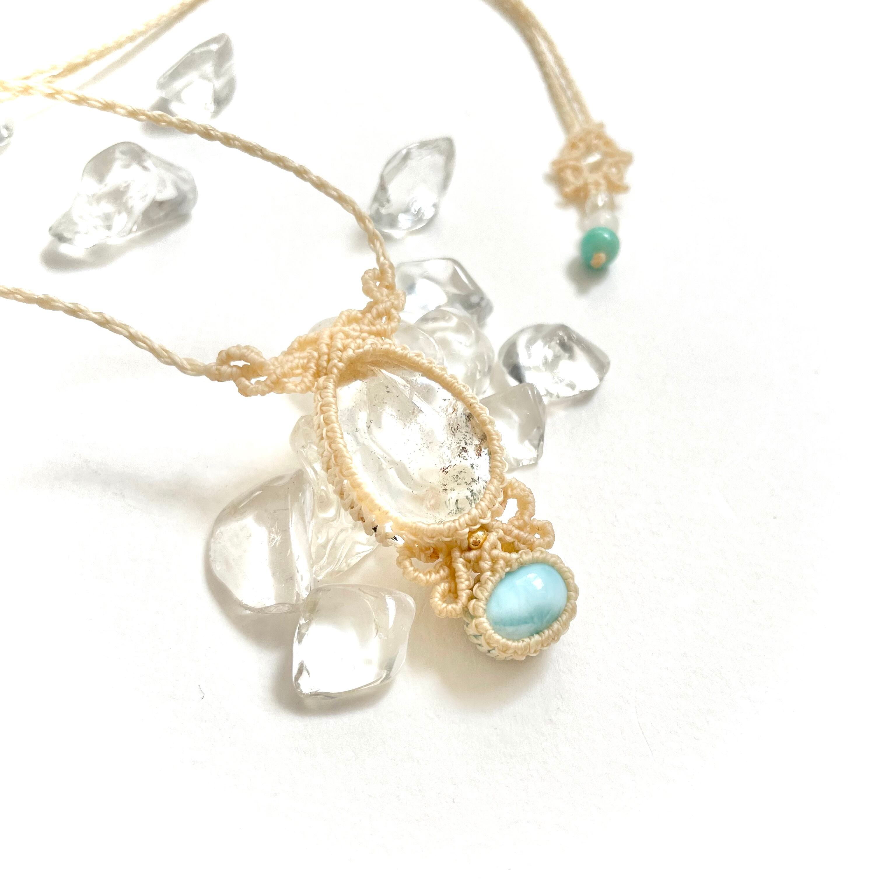 優しいお守り♪ラリマーとガーデンクォーツの天然石アクセサリー・マクラメネックレス