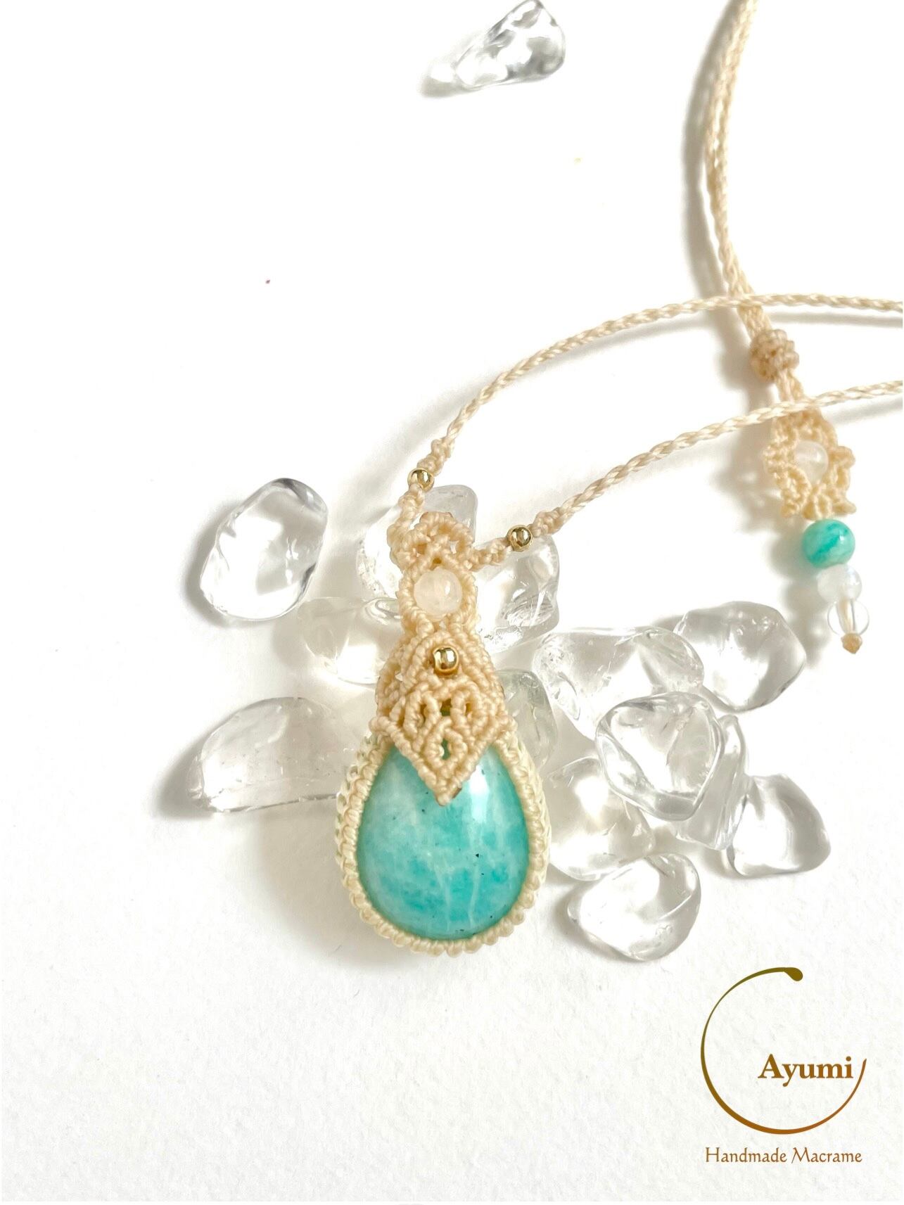 マクラメ 大人 上品 プレゼント プチギフト 天然石 マクラメネックレス マクラメペンダント マクラメアクセサリー 天然石ネックレス 天然石ペンダント 天然石アクセサリー お守りジュエリー レインボームーンストーン アマゾナイト