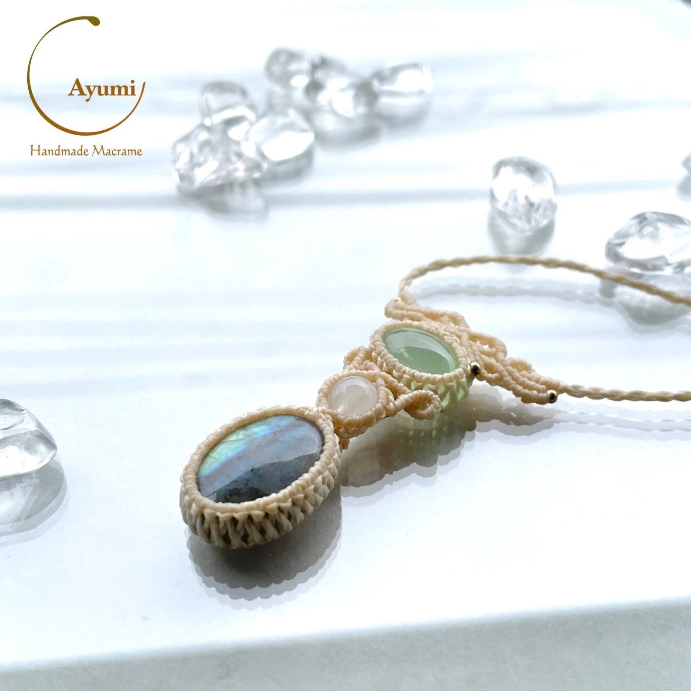 マクラメ 大人 上品 プレゼント プチギフト 天然石 マクラメネックレス マクラメペンダント マクラメアクセサリー 天然石ネックレス 天然石ペンダント 天然石アクセサリー お守りジュエリー レインボームーンストーン ラブラドライト カルセドニー