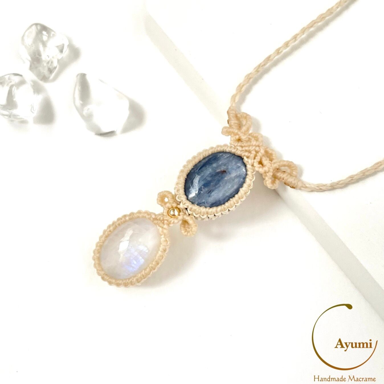 静かな世界で*カイヤナイトとレインボームーンストーンの天然石マクラメネックレス