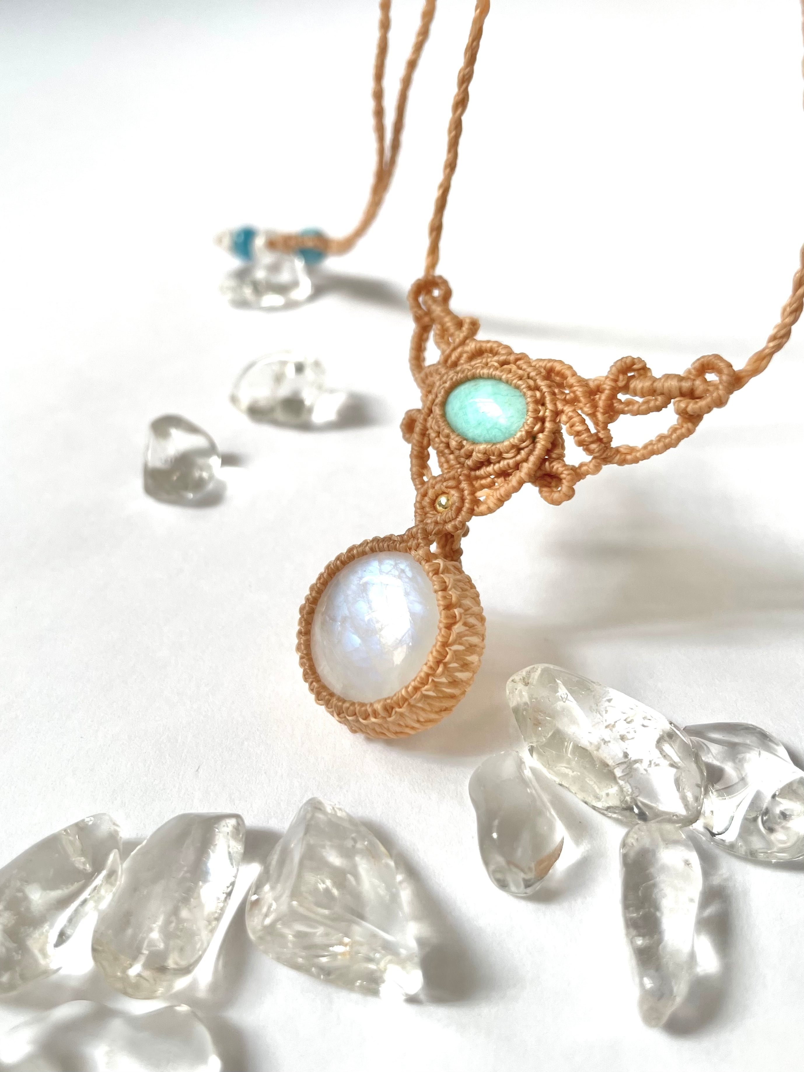 kuru*レインボームーンストーンとアマゾナイトの天然石マクラメネックレス