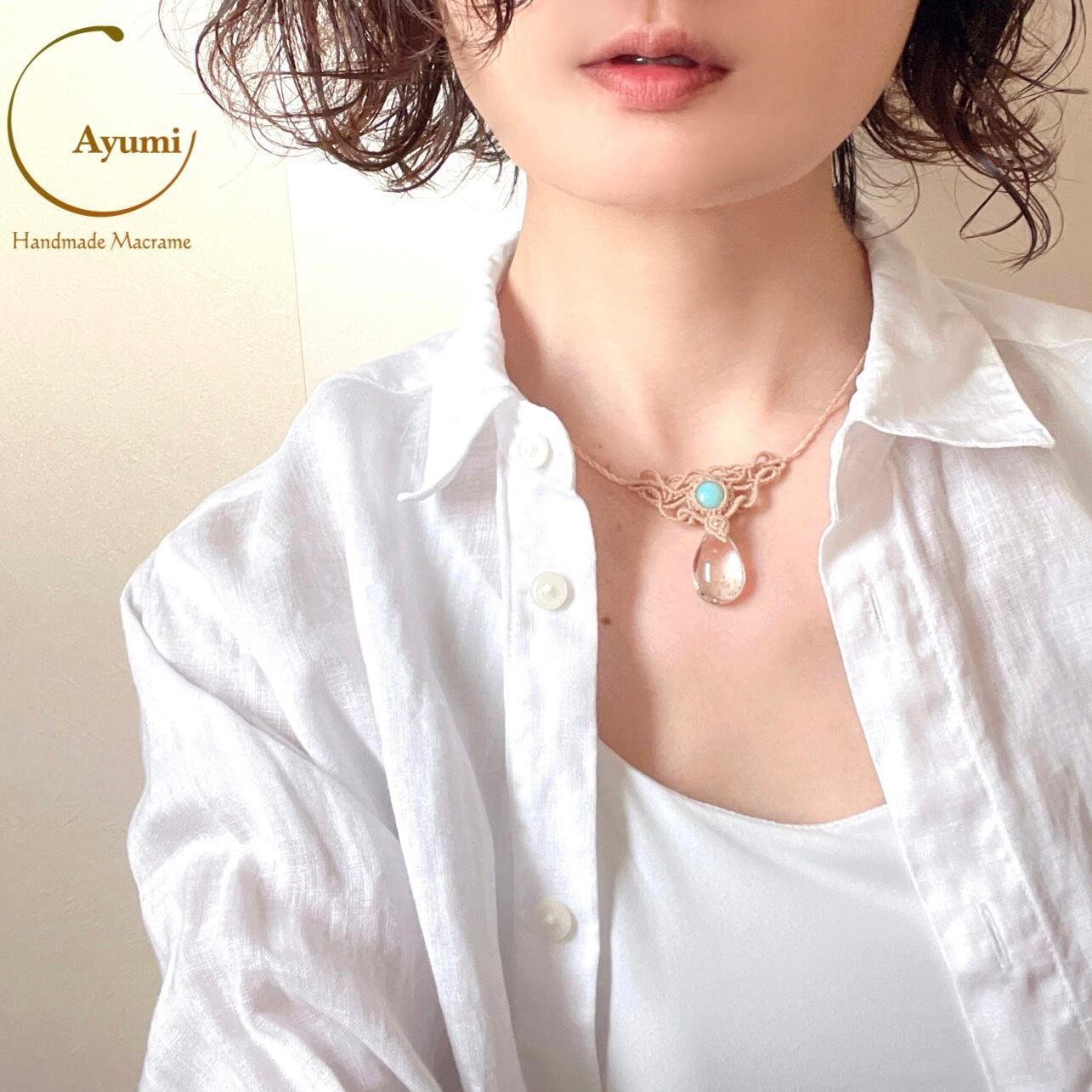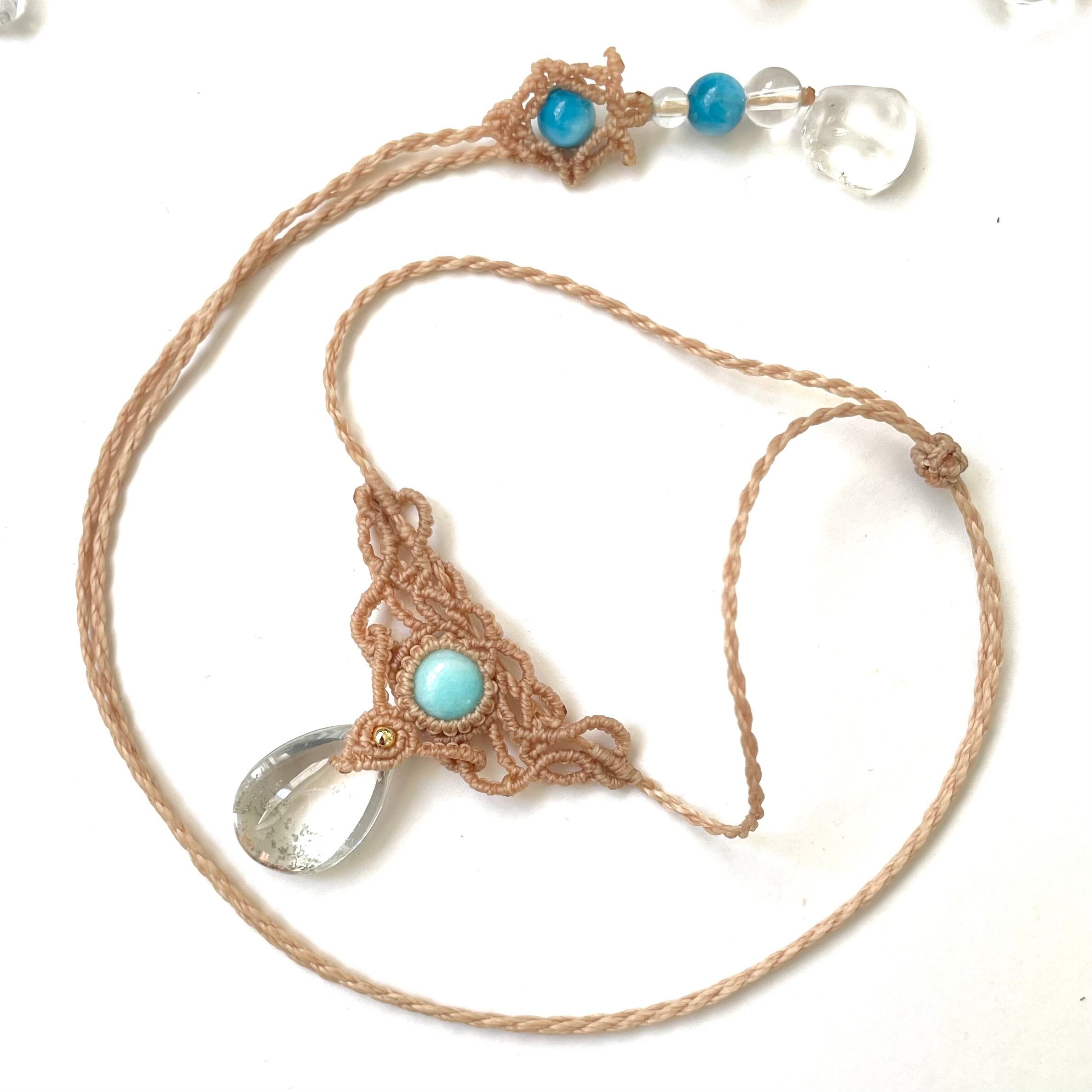 kuru*アマゾナイトとガーデンクォーツの天然石マクラメネックレス