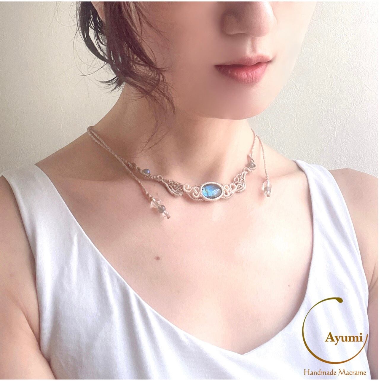 天使の羽つき♪♪♪ラブラドライトの天然石マクラメネックレス