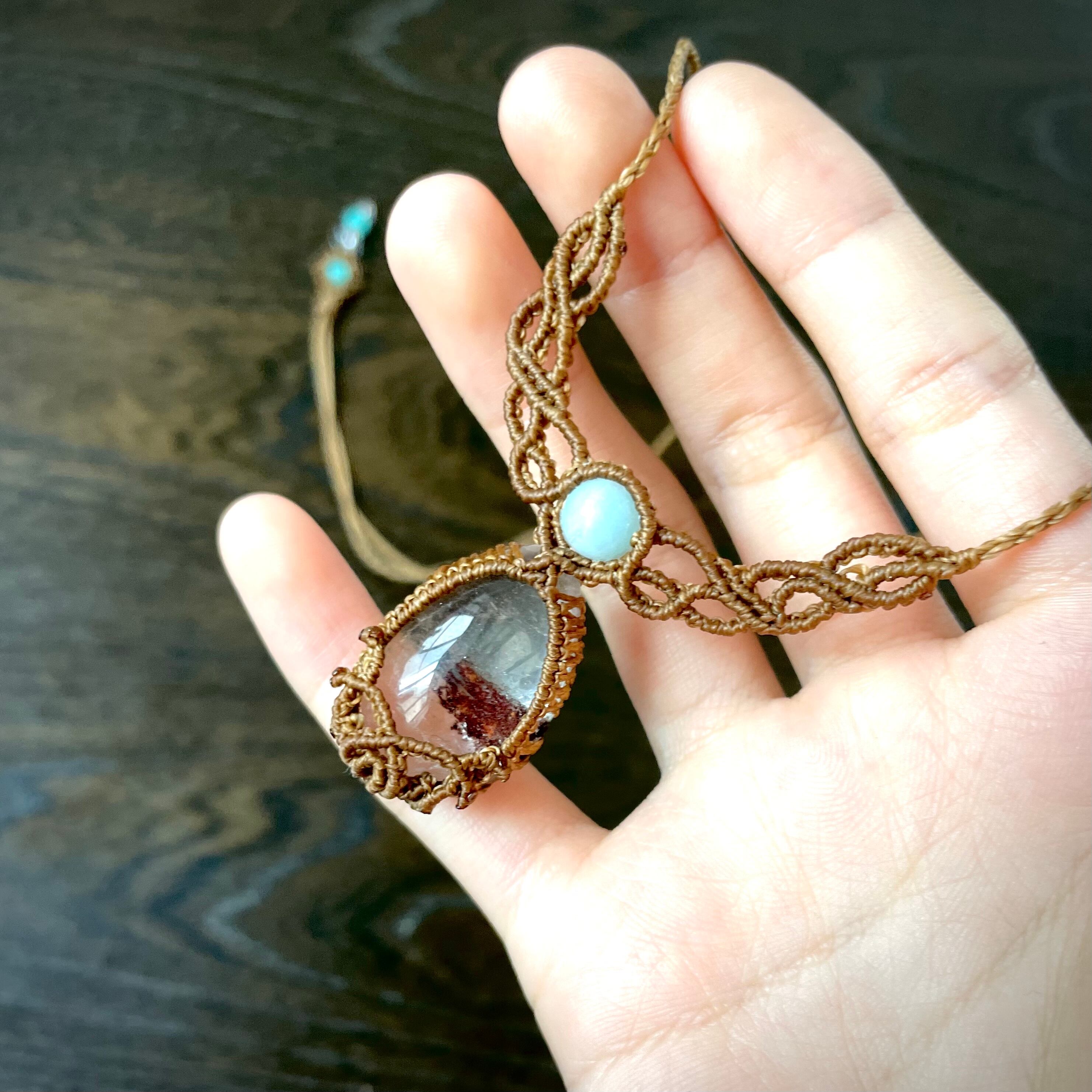 うきうき♪アマゾナイトとガーデンクォーツ天然石アクセサリー・マクラメネックレス