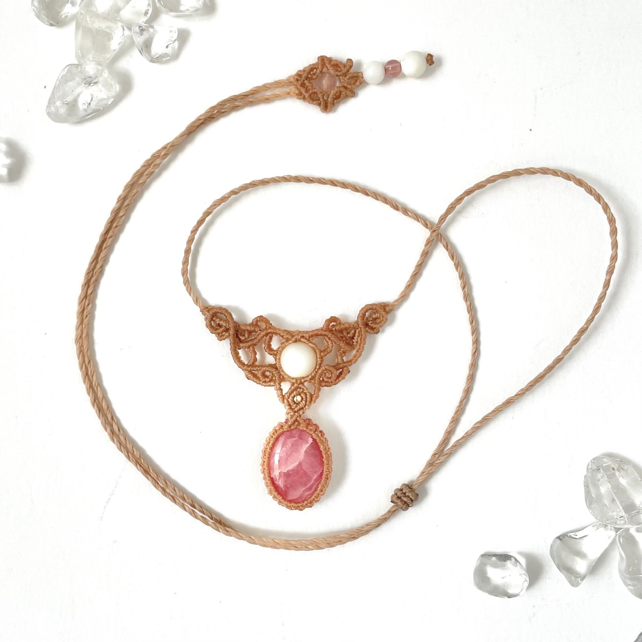 マクラメ 大人 上品 プレゼント プチギフト 天然石 マクラメネックレス マクラメペンダント マクラメアクセサリー 天然石ネックレス 天然石ペンダント 天然石アクセサリー お守りジュエリー ロードクロサイト インカローズ
