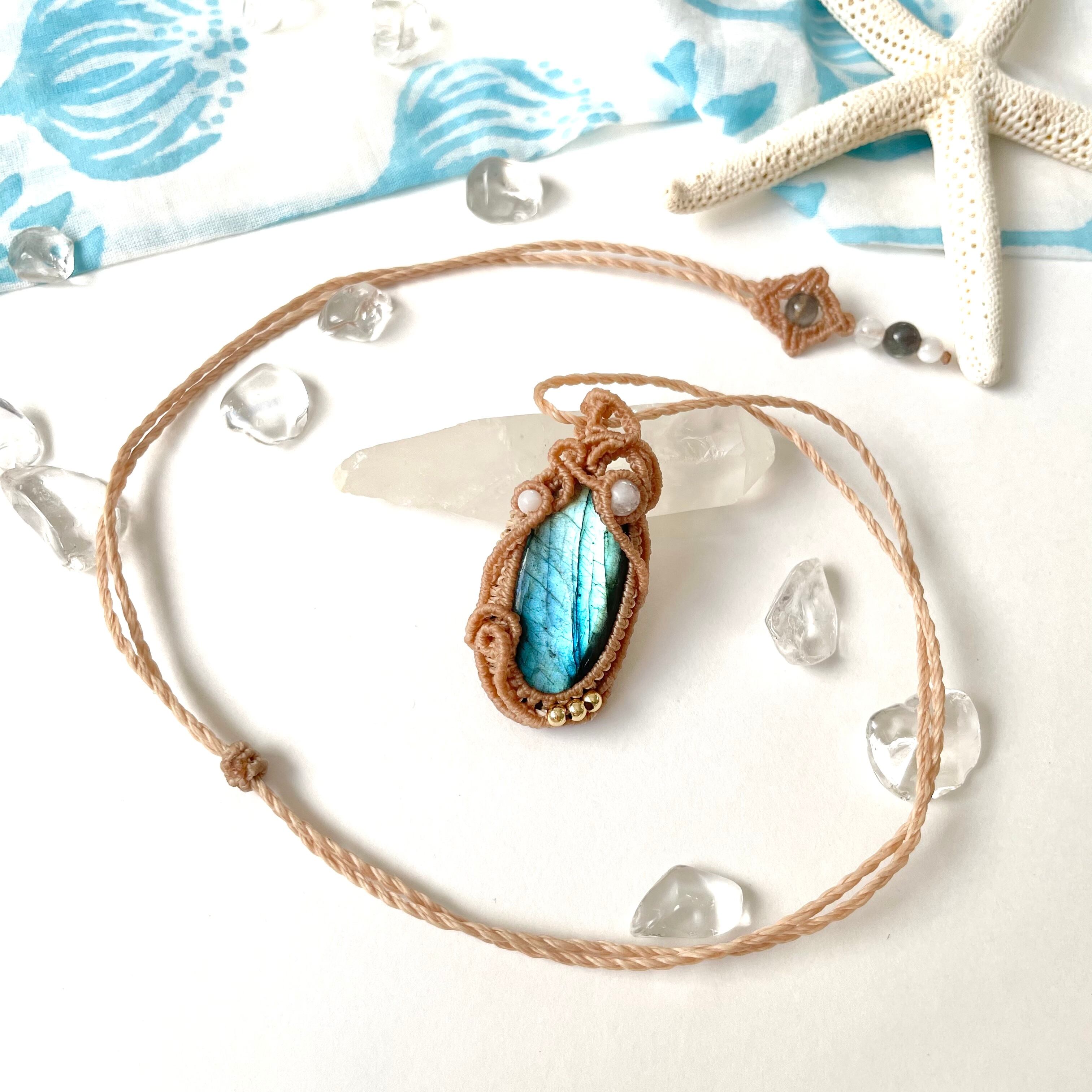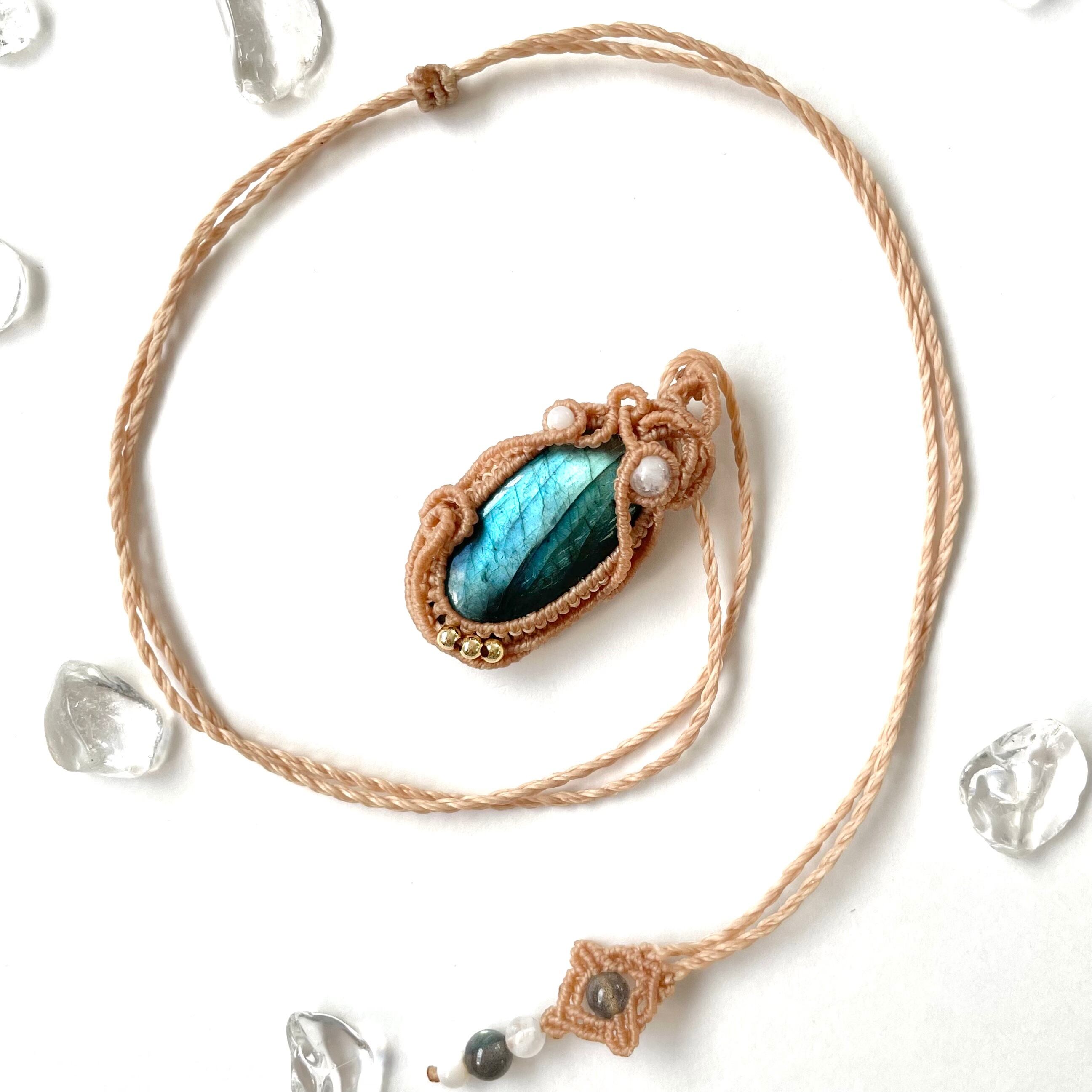 マクラメ 大人 上品 プレゼント プチギフト 天然石 マクラメネックレス マクラメペンダント マクラメアクセサリー 天然石ネックレス 天然石ペンダント 天然石アクセサリー お守り お守りジュエリー ラブラドライト
