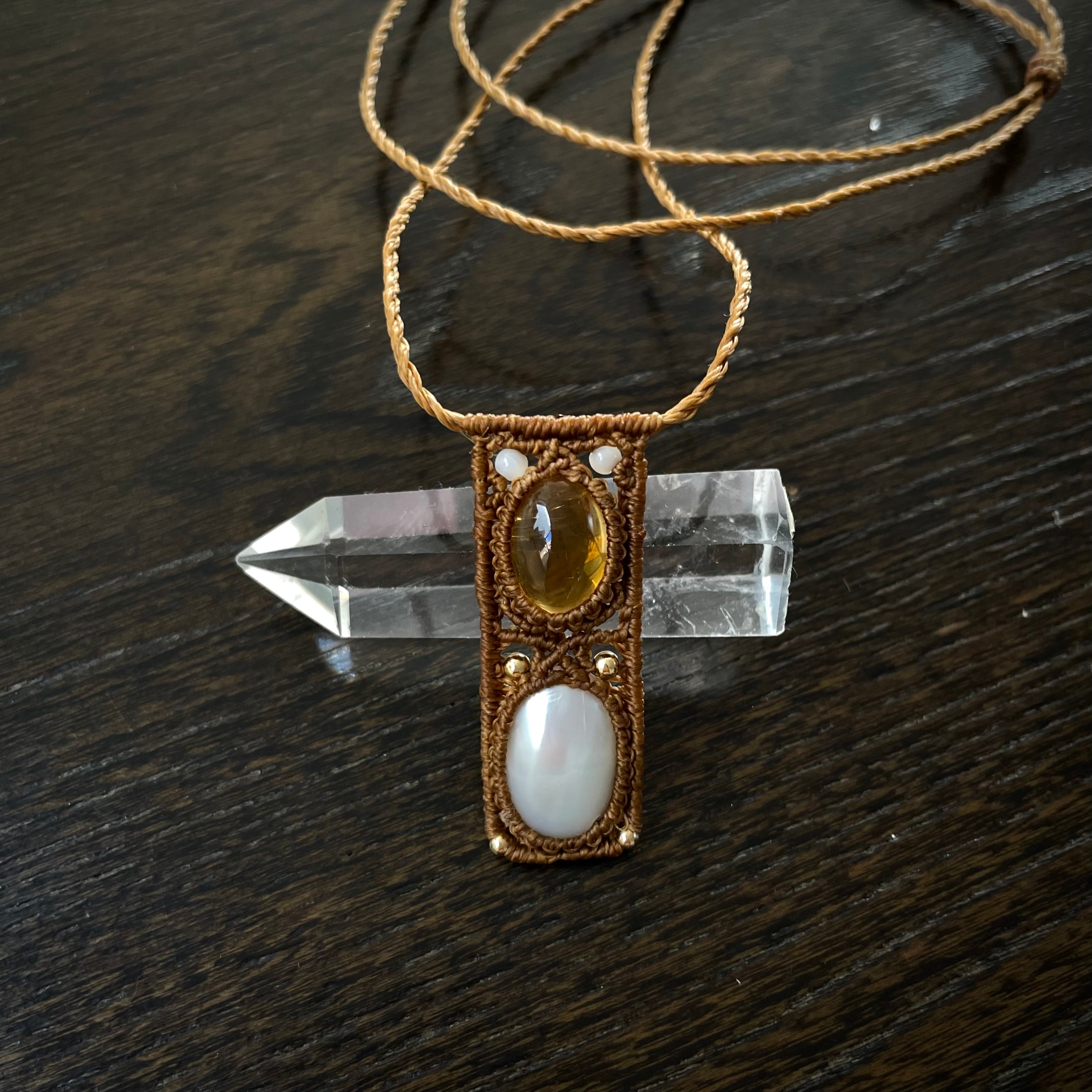 マクラメ 大人 上品 プレゼント プチギフト 天然石 マクラメネックレス マクラメペンダント マクラメアクセサリー 天然石ネックレス 天然石ペンダント 天然石アクセサリー お守りジュエリー シトリン パール