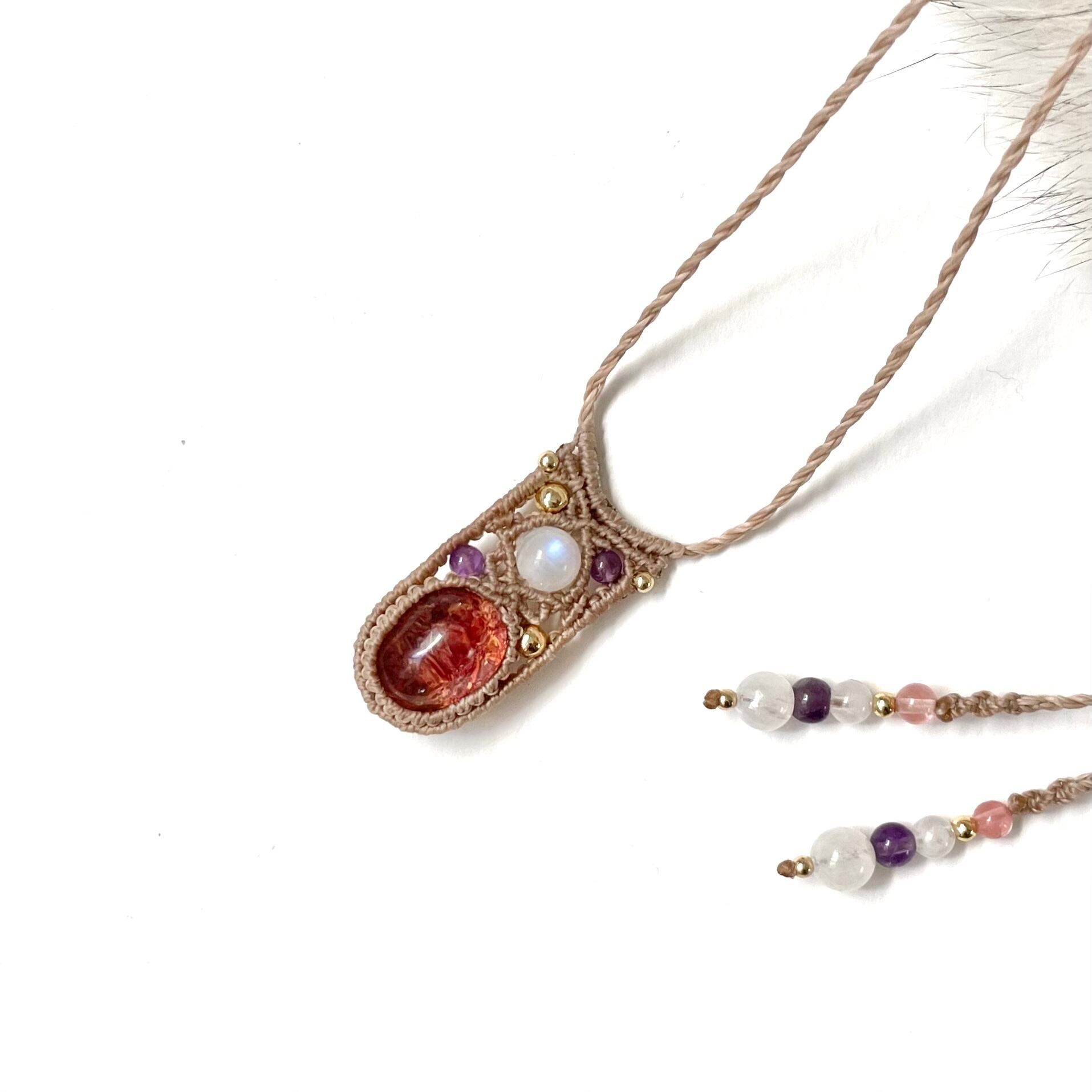 マクラメ 大人 上品 プレゼント プチギフト 天然石 マクラメネックレス マクラメペンダント マクラメアクセサリー 天然石ネックレス 天然石ペンダント 天然石アクセサリー お守りジュエリー ガーデンクォーツ