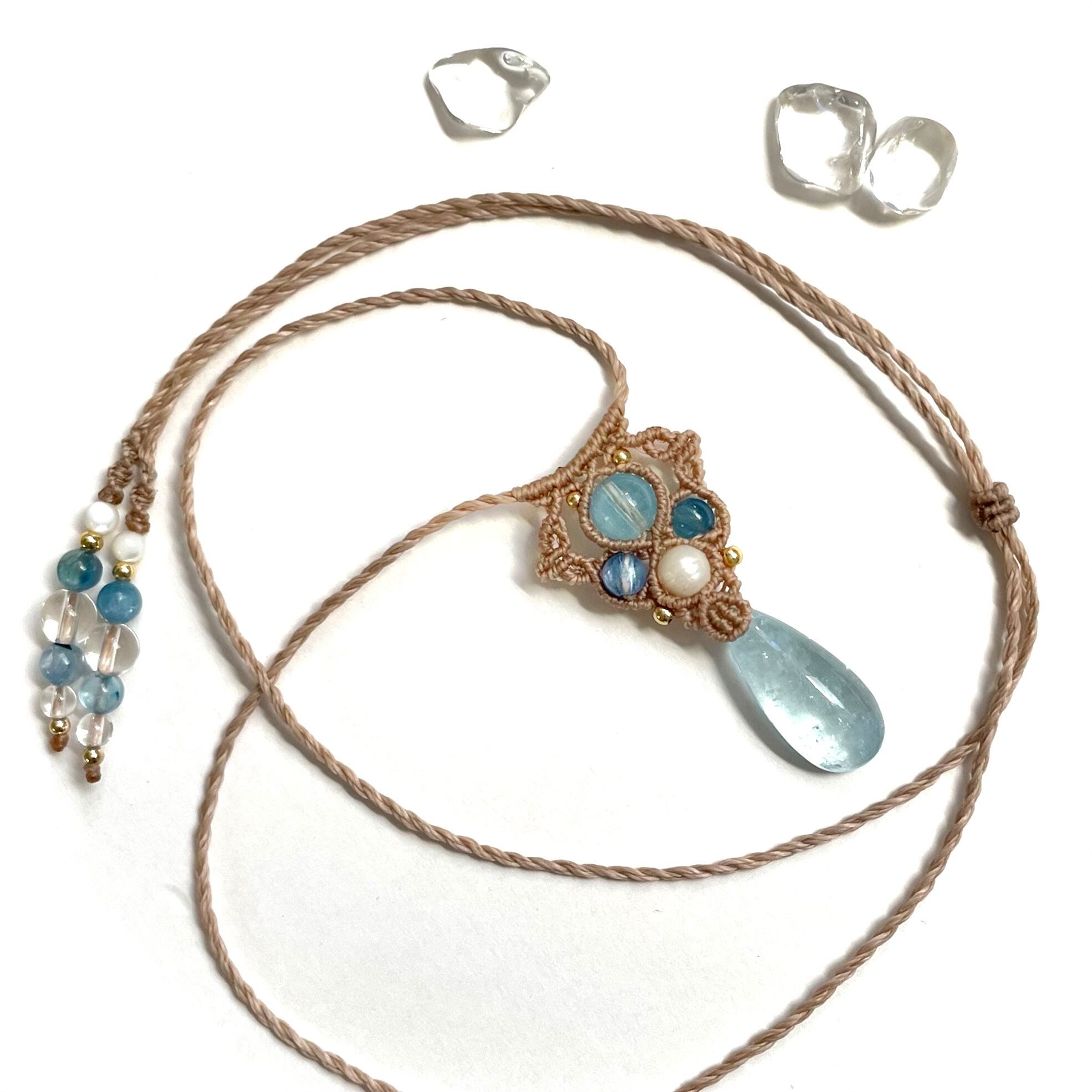マクラメ 大人 上品 プレゼント 天然石 マクラメネックレス マクラメペンダント マクラメアクセサリー 天然石ネックレス 天然石ペンダント 天然石アクセサリー アクアマリン パール お守り お守りジュエリー
