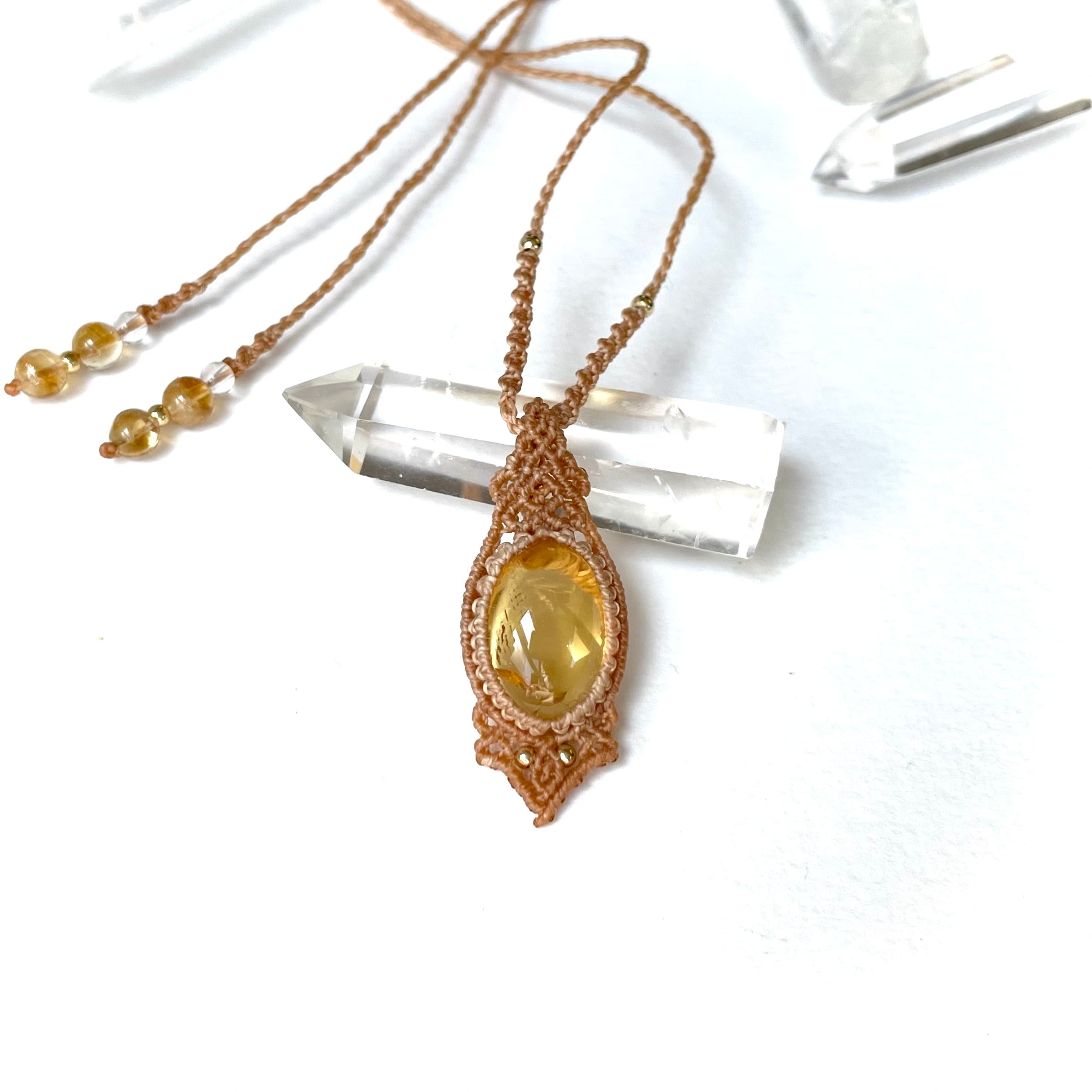 マクラメ 大人 上品 プレゼント プチギフト 天然石 マクラメネックレス マクラメペンダント マクラメアクセサリー 天然石ネックレス 天然石ペンダント 天然石アクセサリー クリスマス お守り お守りジュエリー シトリン 誕生石