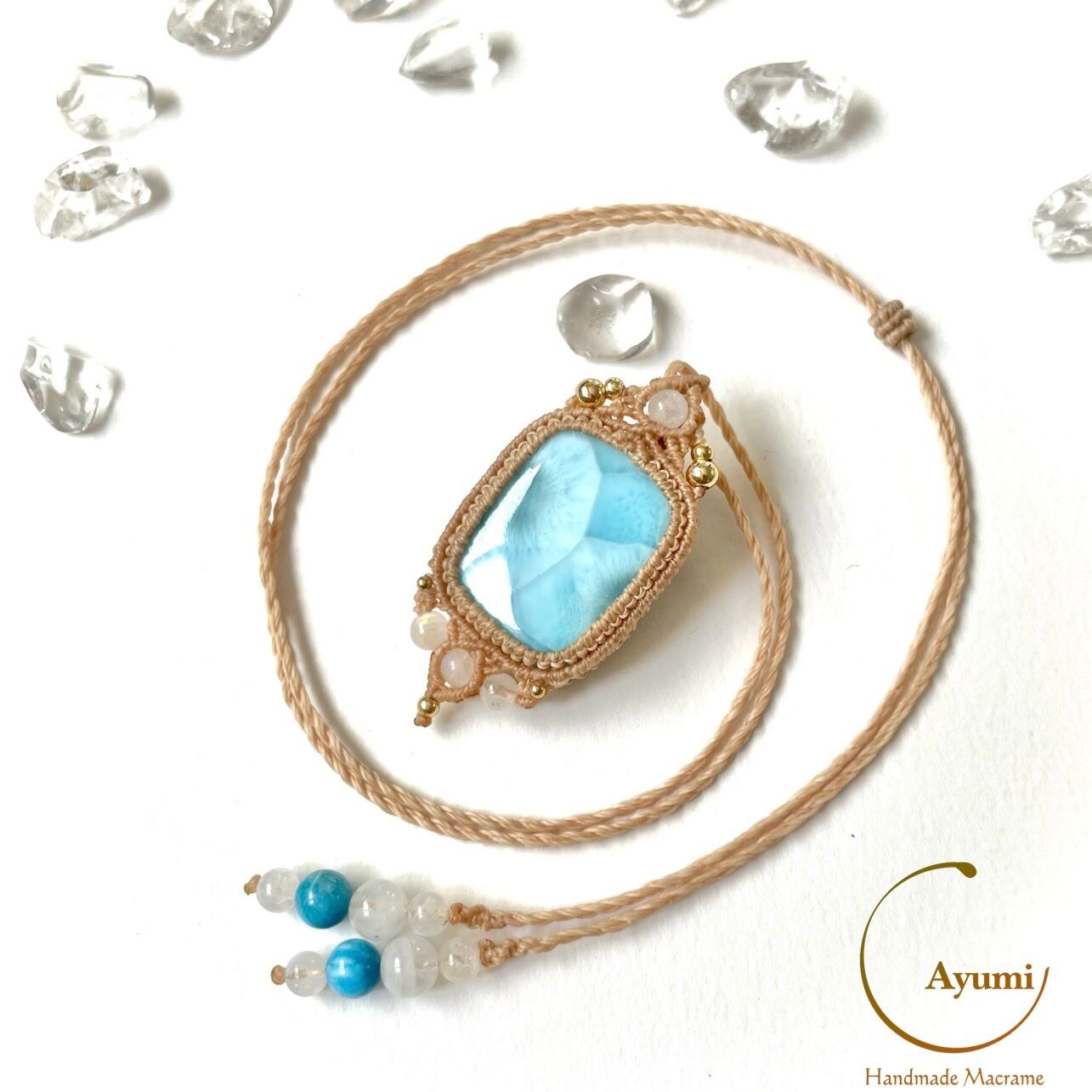 優しいお守り♪スクエアラリマーの天然石マクラメネックレス