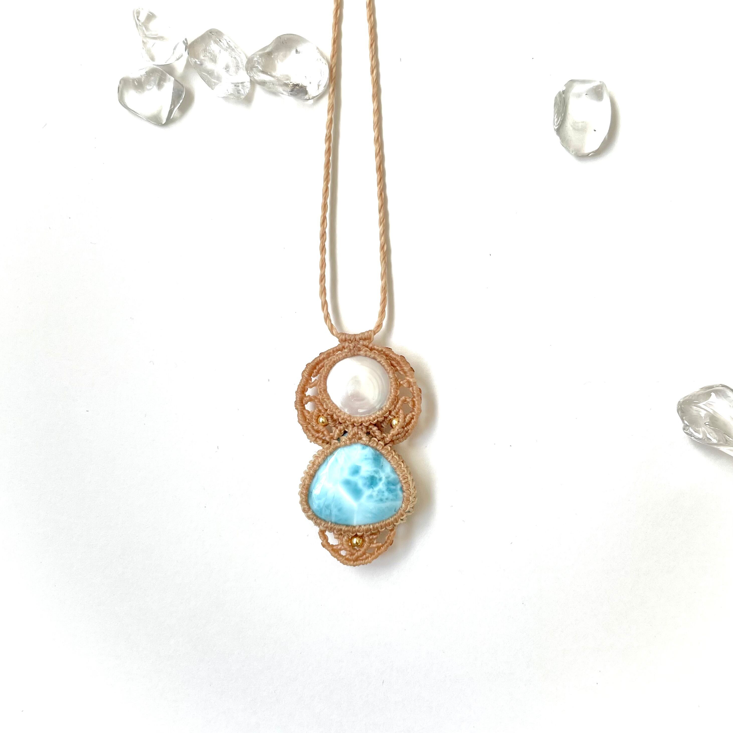 優しいお守り♪ラリマーとパールの天然石マクラメネックレス
