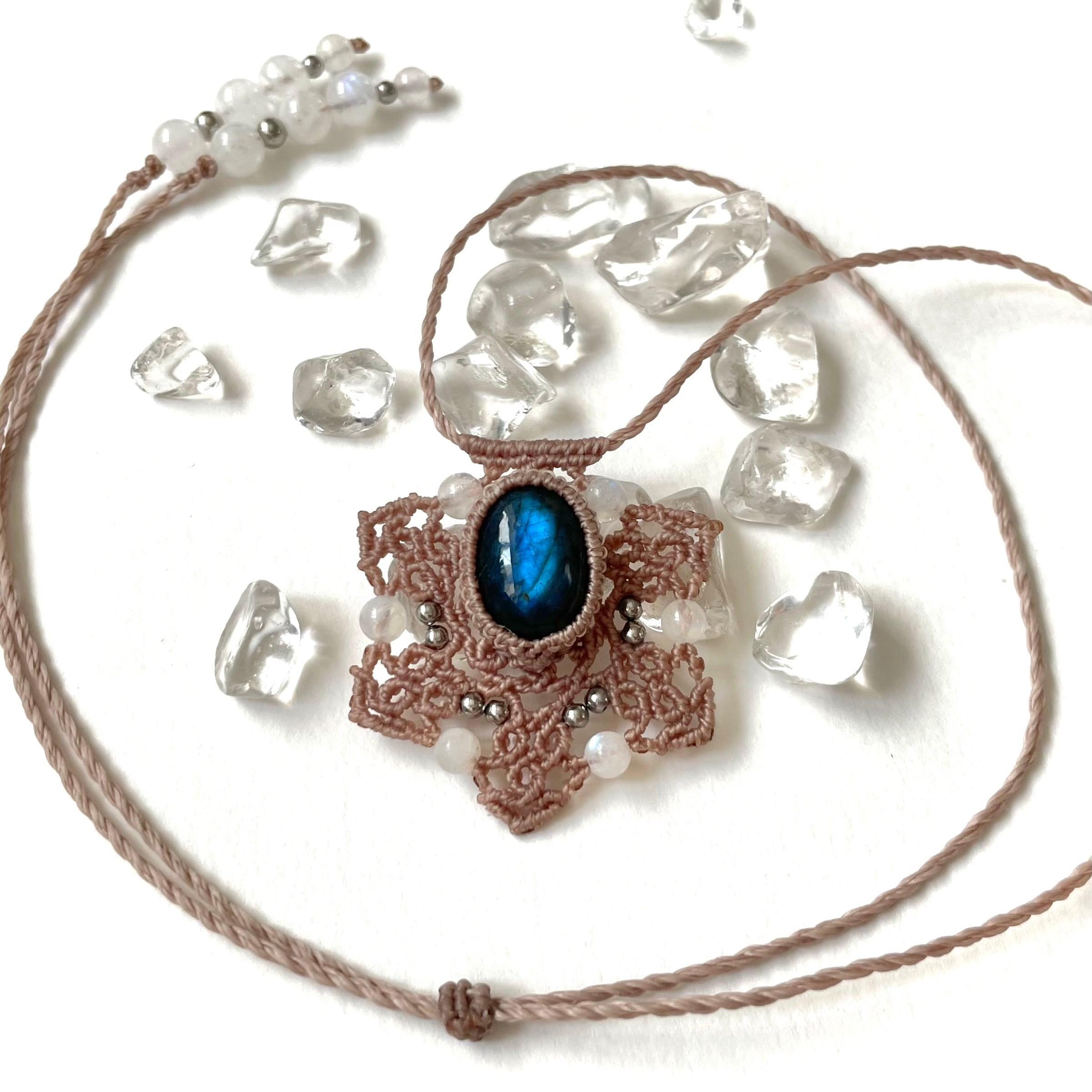 マクラメ 大人 上品 プレゼント プチギフト 天然石 マクラメネックレス マクラメペンダント マクラメアクセサリー 天然石ネックレス 天然石ペンダント 天然石アクセサリー お守りジュエリー ラブラドライト