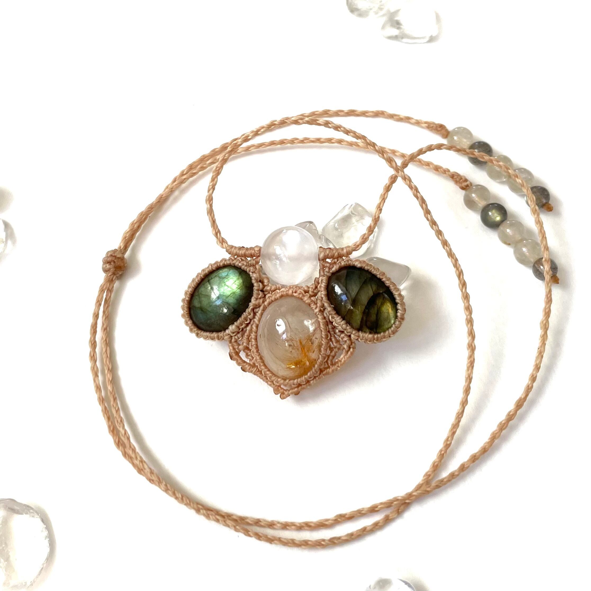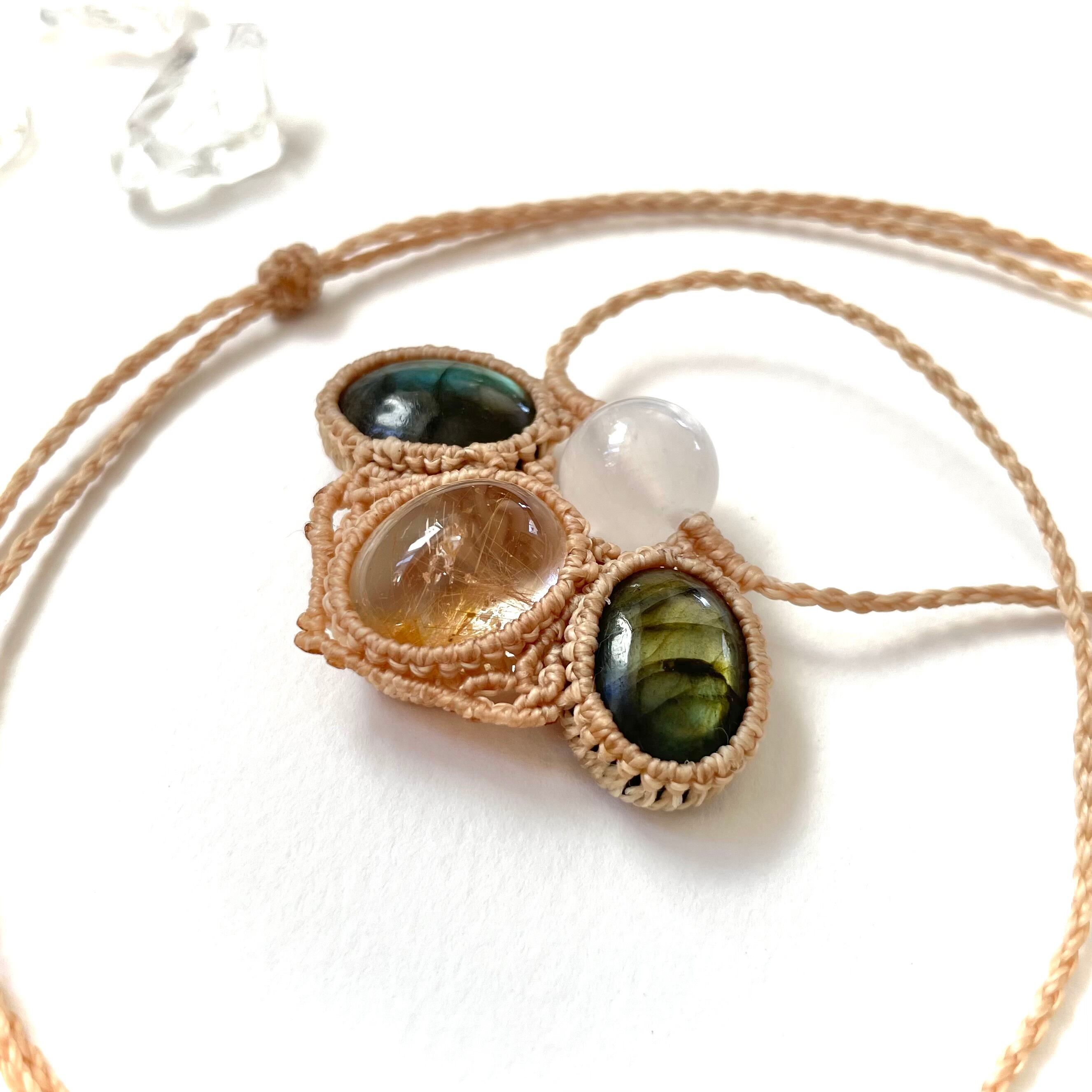 マクラメ 大人 上品 プレゼント プチギフト 天然石 マクラメネックレス マクラメペンダント マクラメアクセサリー 天然石ネックレス 天然石ペンダント 天然石アクセサリー お守り お守りジュエリー ラブラドライト セレナイト ルチルクォーツ