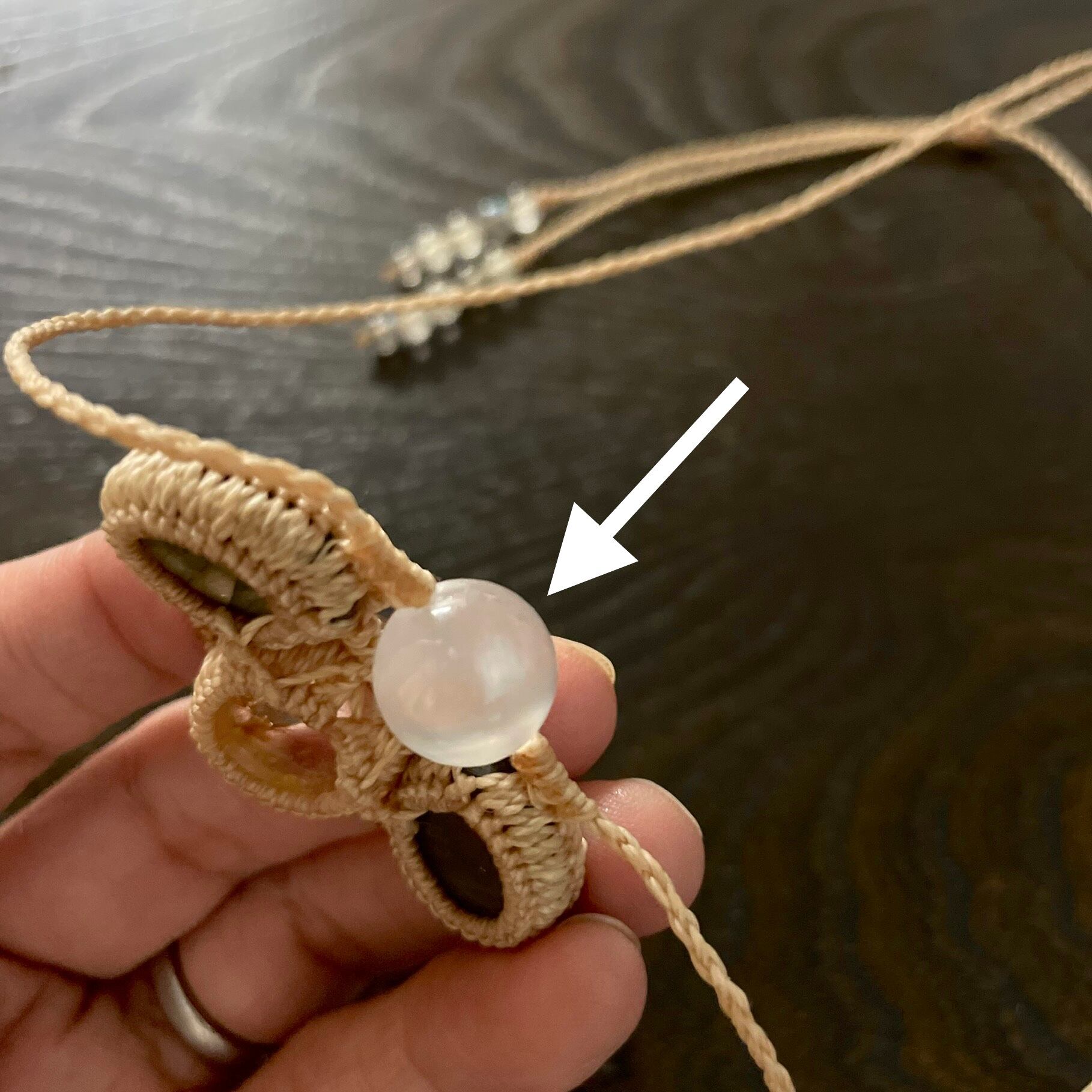セレナイト・ルチルクォーツ・ラブラドライトの彩りたっぷり天然石マクラメネックレス