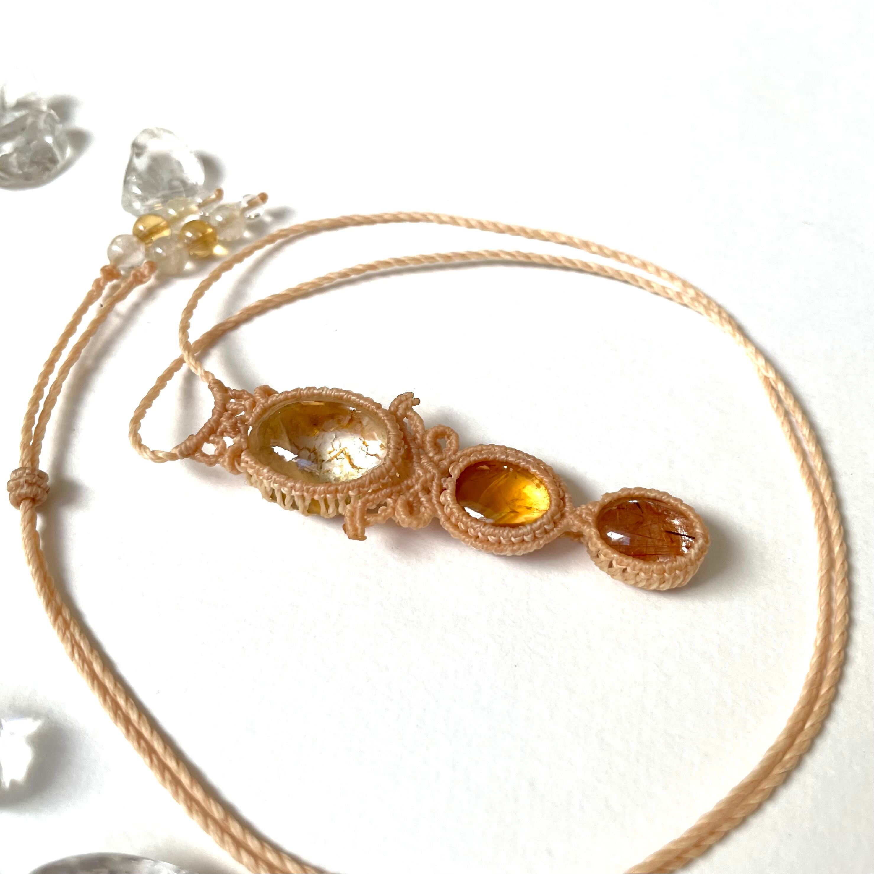 シトリン【11月誕生石】とガーデンクォーツとルチルクォーツの天然石マクラメネックレス