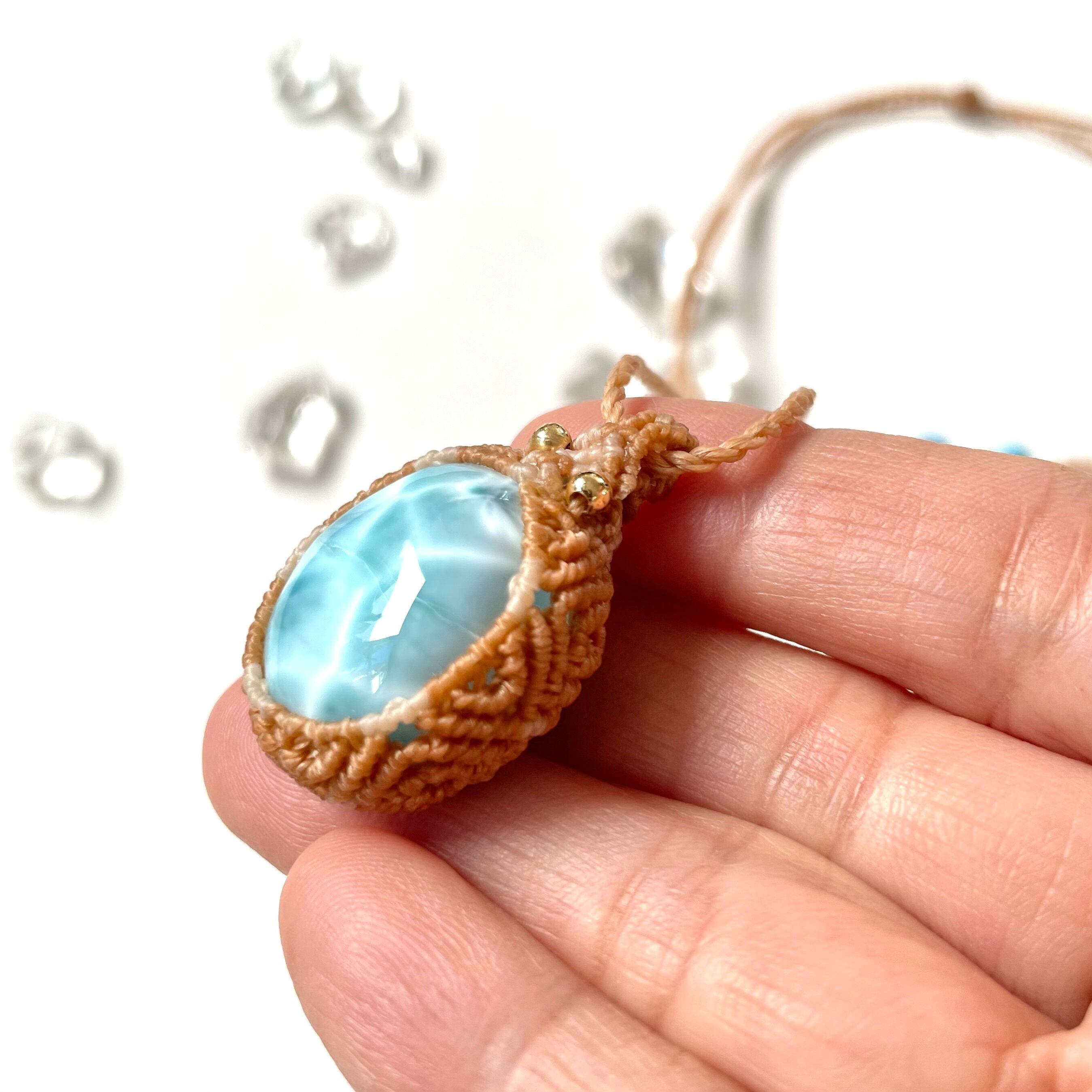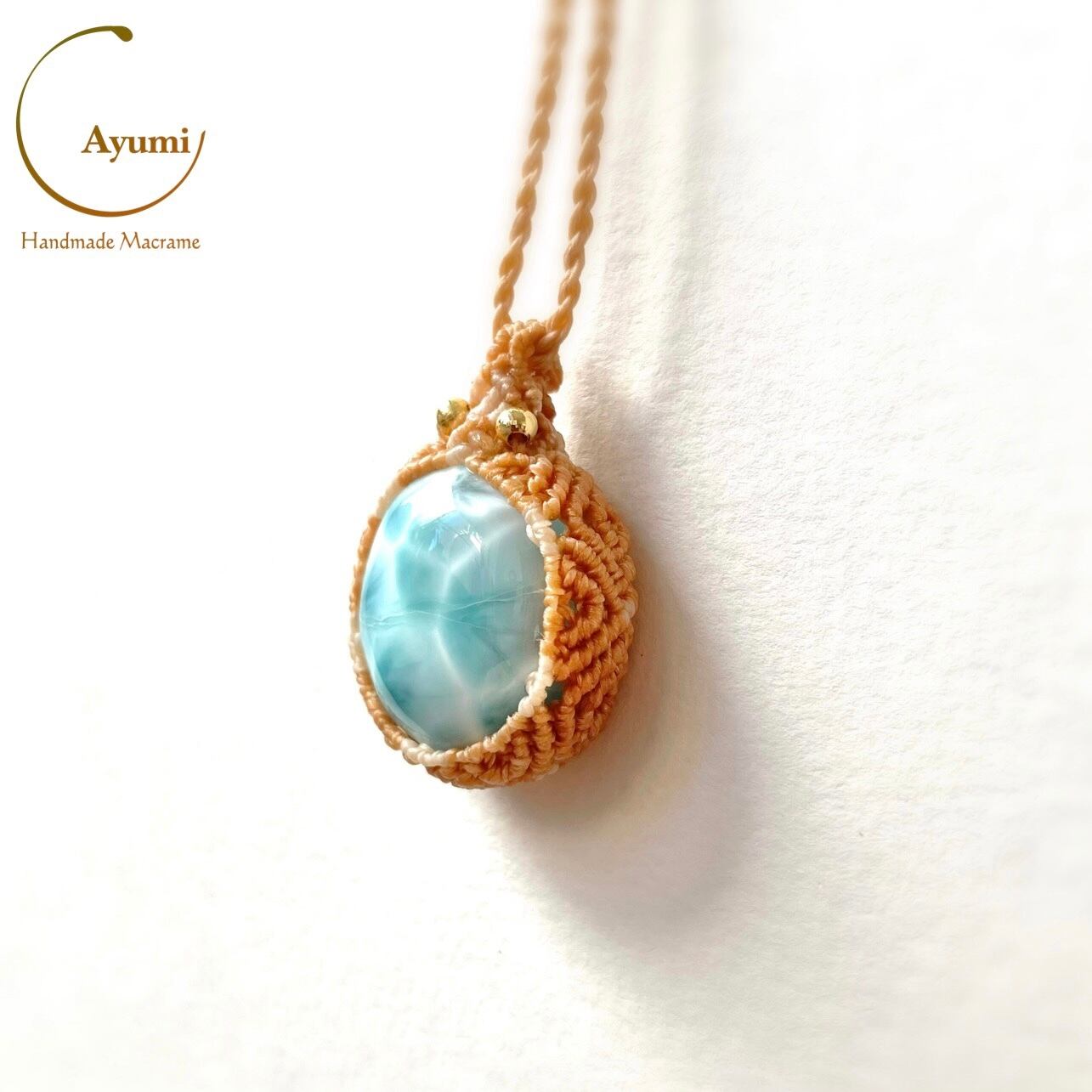 優しいお守り♪ ラリマーの飾り包み天然石マクラメネックレス♪♪♪