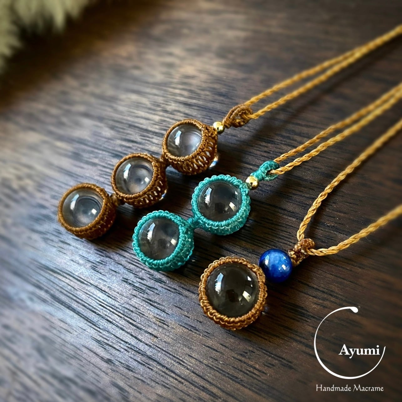 まんまる♪クリスタルクォーツスフィアのふたつぶ天然石マクラメネックレス