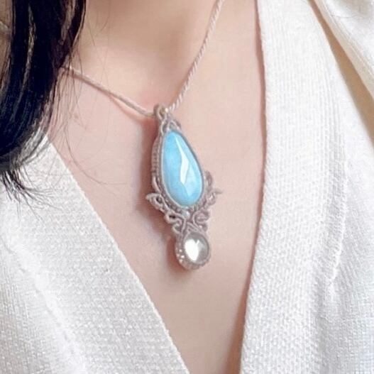 マクラメ 大人 上品 プレゼント プチギフト 天然石 マクラメネックレス マクラメペンダント マクラメアクセサリー 天然石ネックレス 天然石ペンダント 天然石アクセサリー クリスマス お守り お守りジュエリー ラリマー