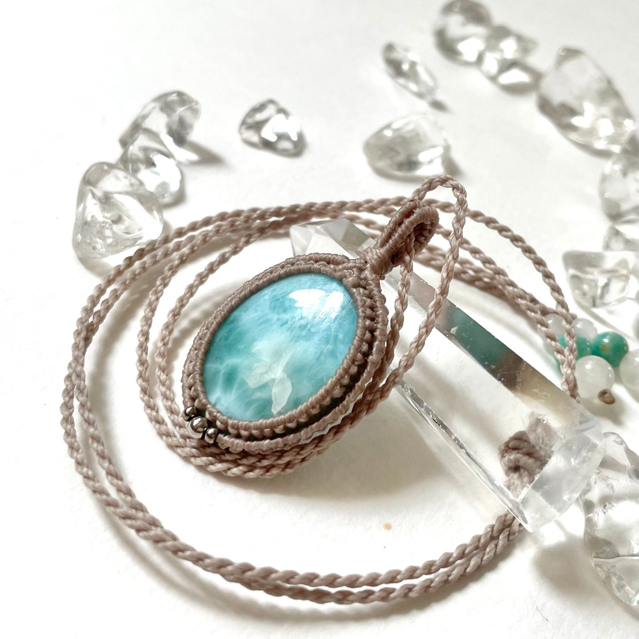 マクラメ 大人 上品 プレゼント 天然石 マクラメネックレス マクラメペンダント マクラメアクセサリー 天然石ネックレス 天然石ペンダント 天然石アクセサリー ラリマー お守り お守りジュエリー