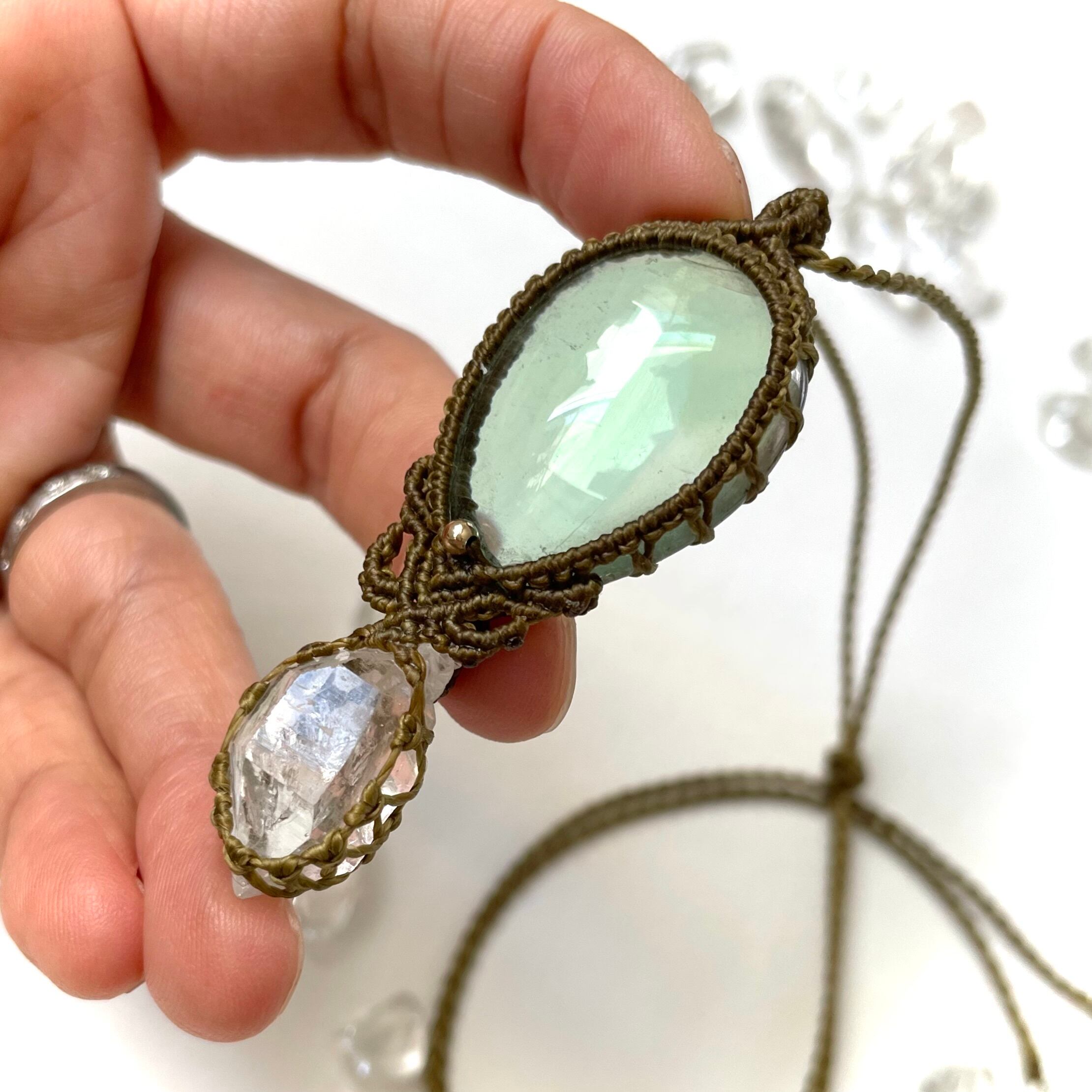 マクラメ 大人 上品 プレゼント プチギフト 天然石 マクラメネックレス マクラメペンダント マクラメアクセサリー 天然石ネックレス 天然石ペンダント 天然石アクセサリー クリスマス お守り お守りジュエリー フローライト ハーキマーダイヤモンド
