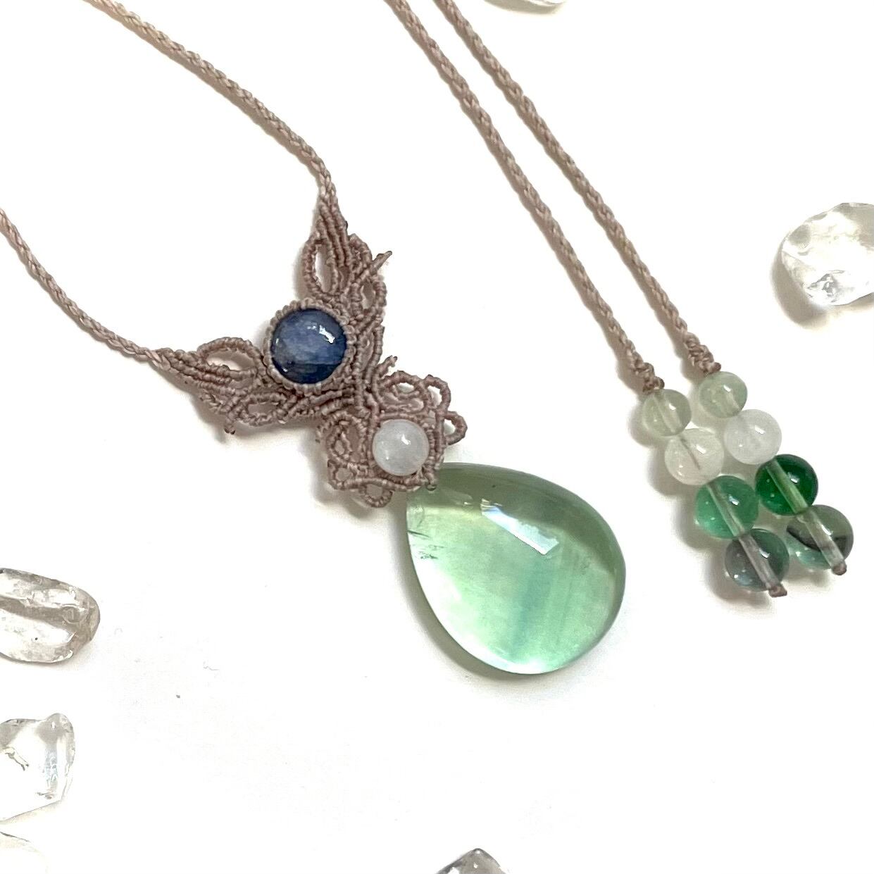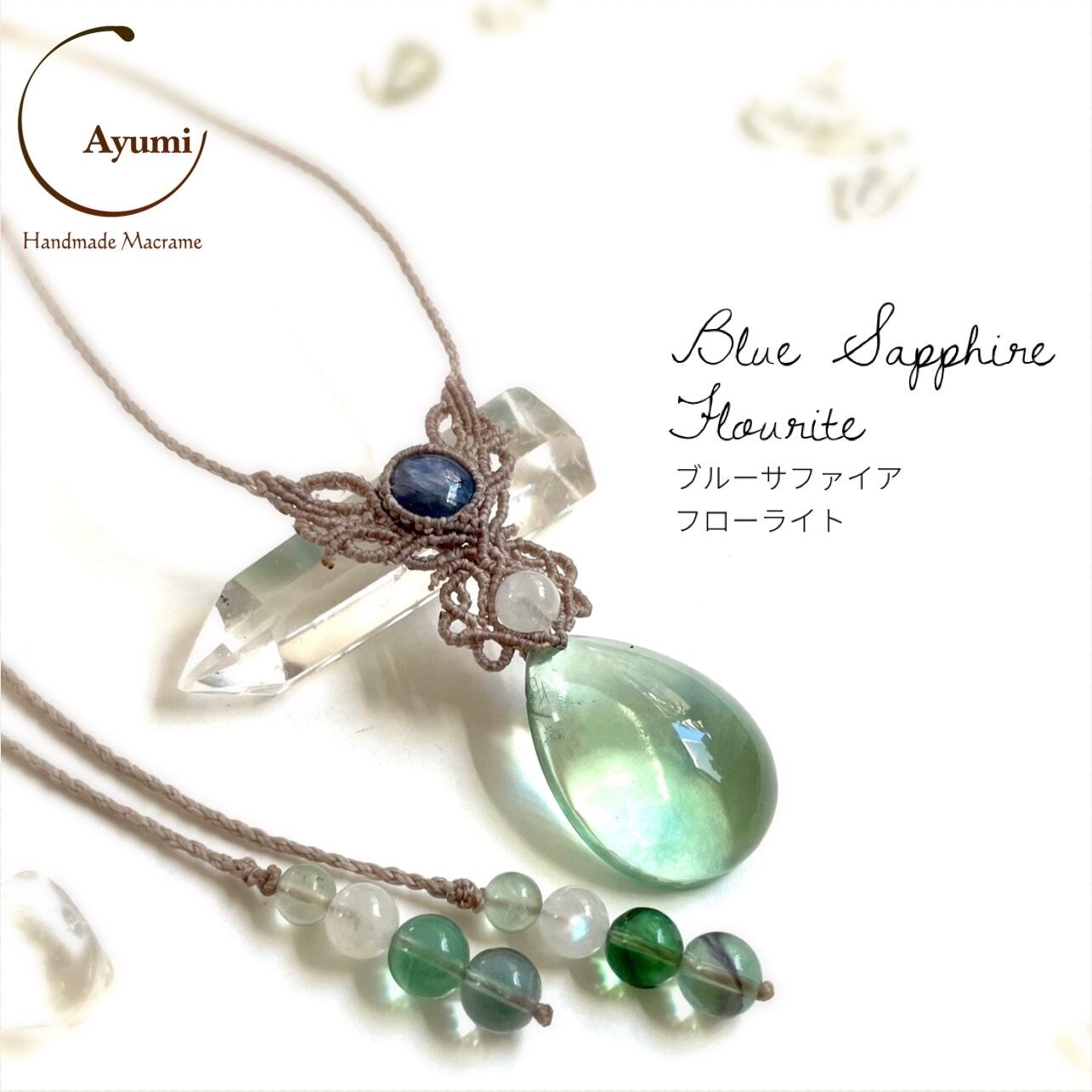 心安らぐあなたの味方♪ フローライトとブルーサファイアの天然石アクセサリー・マクラメ編みネックレス