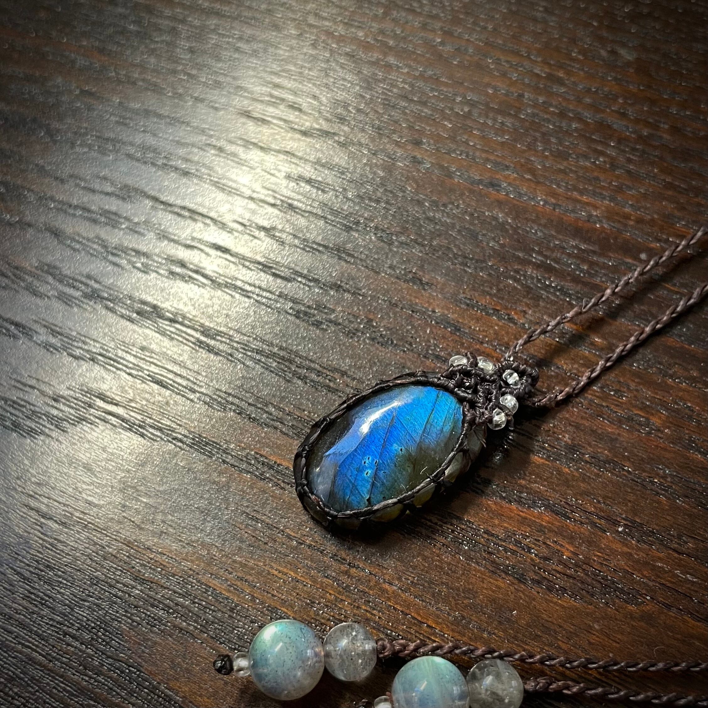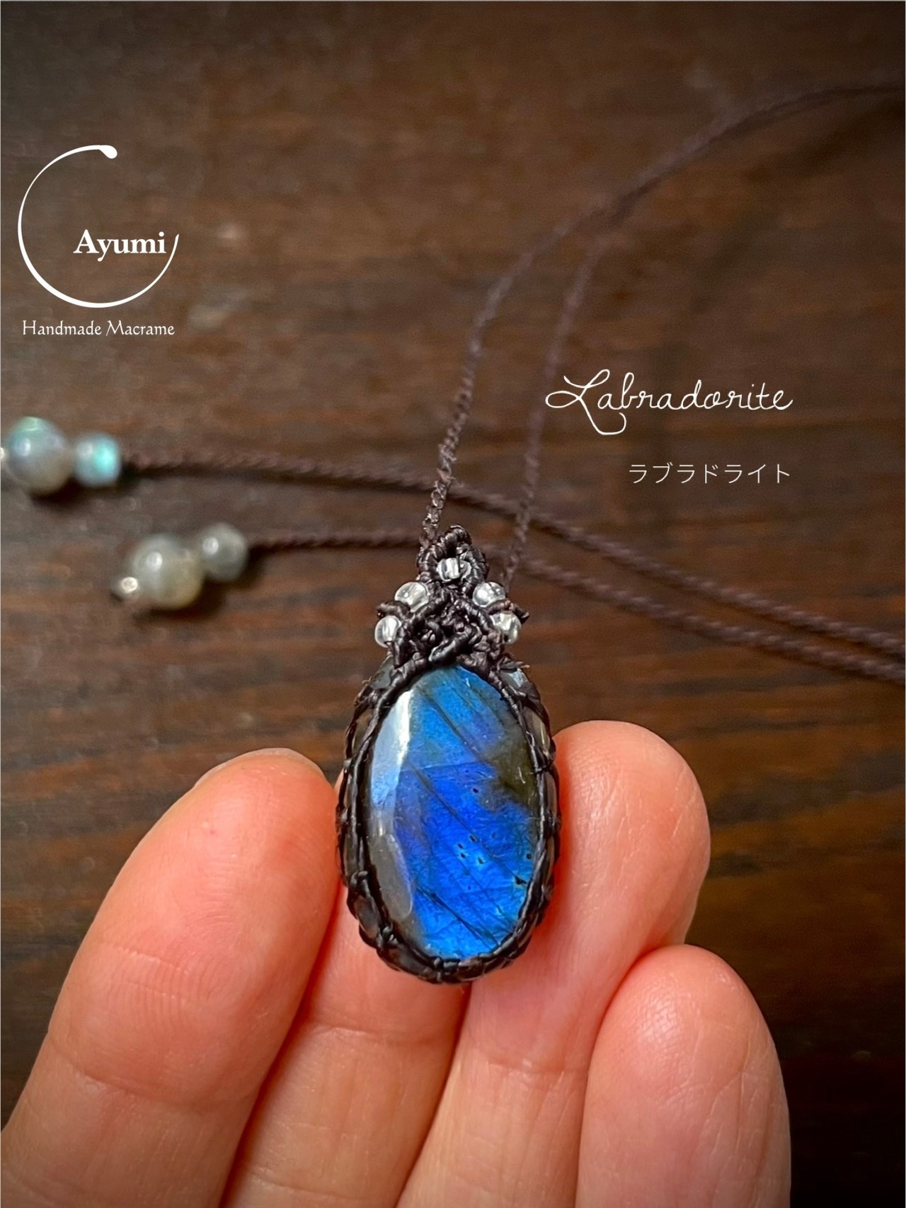 マクラメ 大人 上品 プレゼント プチギフト 天然石 マクラメネックレス マクラメペンダント マクラメアクセサリー 天然石ネックレス 天然石ペンダント 天然石アクセサリー お守り お守りジュエリー ラブラドライト
