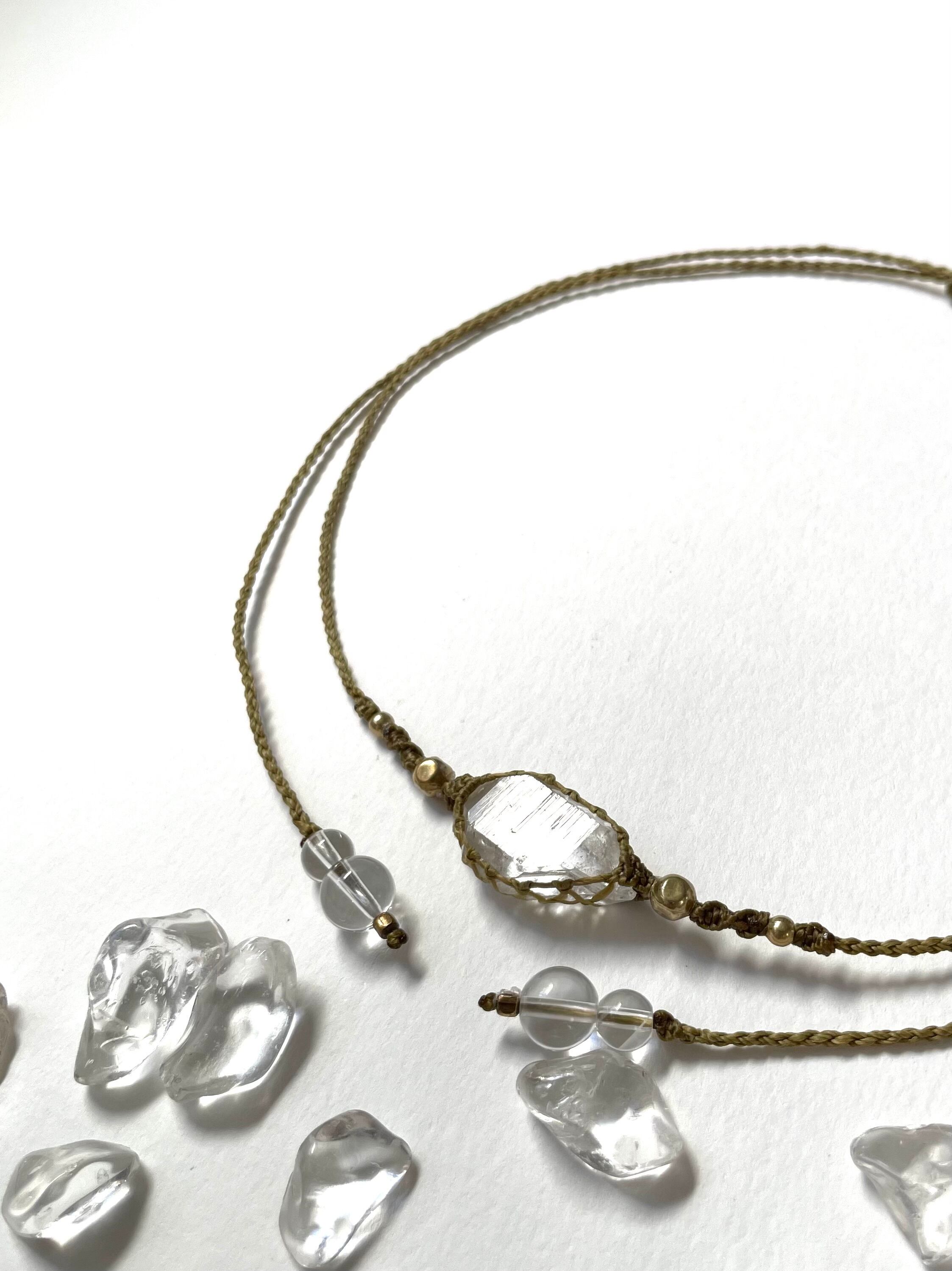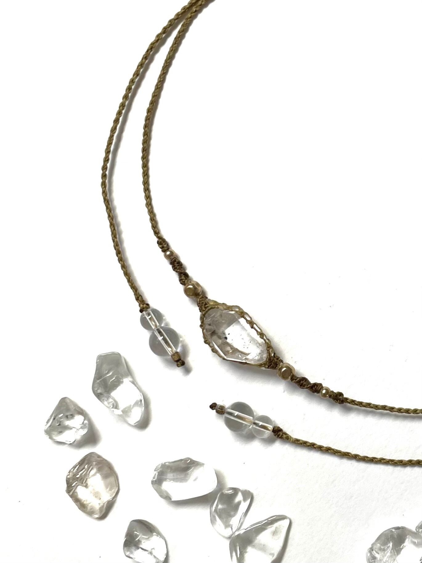 ハーキマーダイアモンドのシンプル天然石マクラメ編みネックレス
